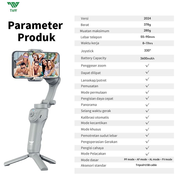 TNW M01 PRO GIMBAL 3 AXIS STABILIZER UNTUK HP DAN SMARTPHONE – FACE TRACKING, AUTO INCEPTION, LAMPU LED DAN TRIPOD MINI