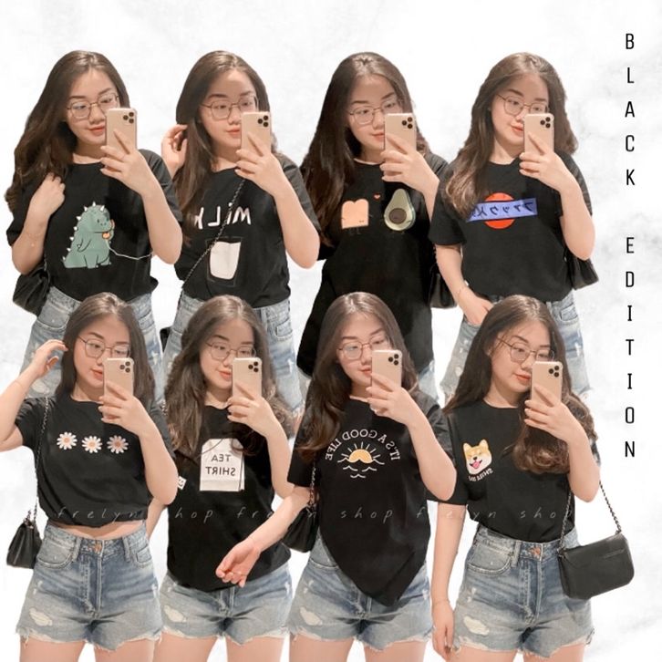 Kaos CewekHitam Jumbo T-shirt Wanita Black Atasan Wanita Pendek Kaos Wanita Dino Atasan Wanita Kekinian