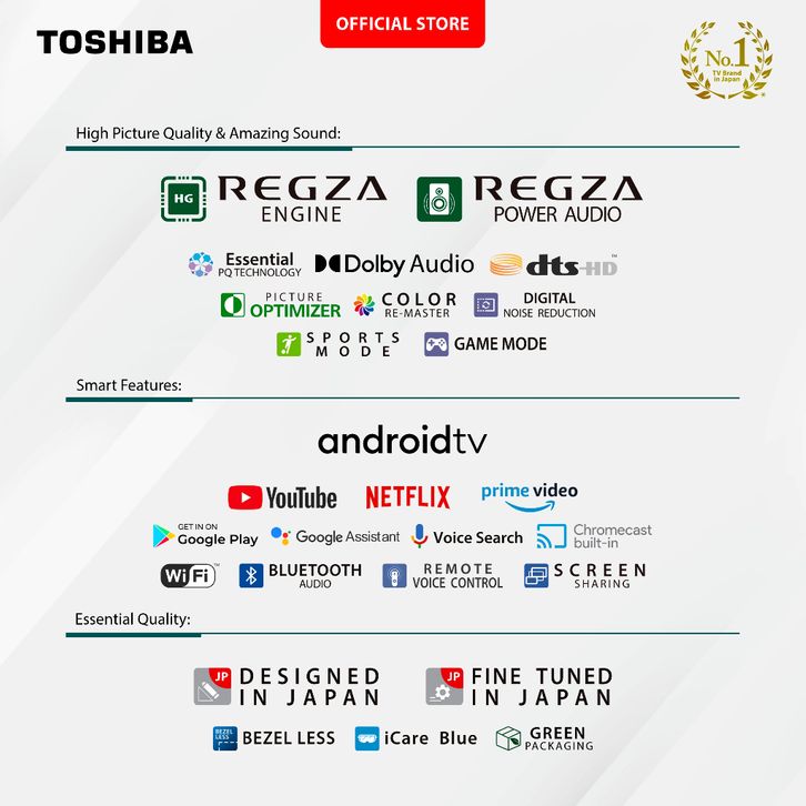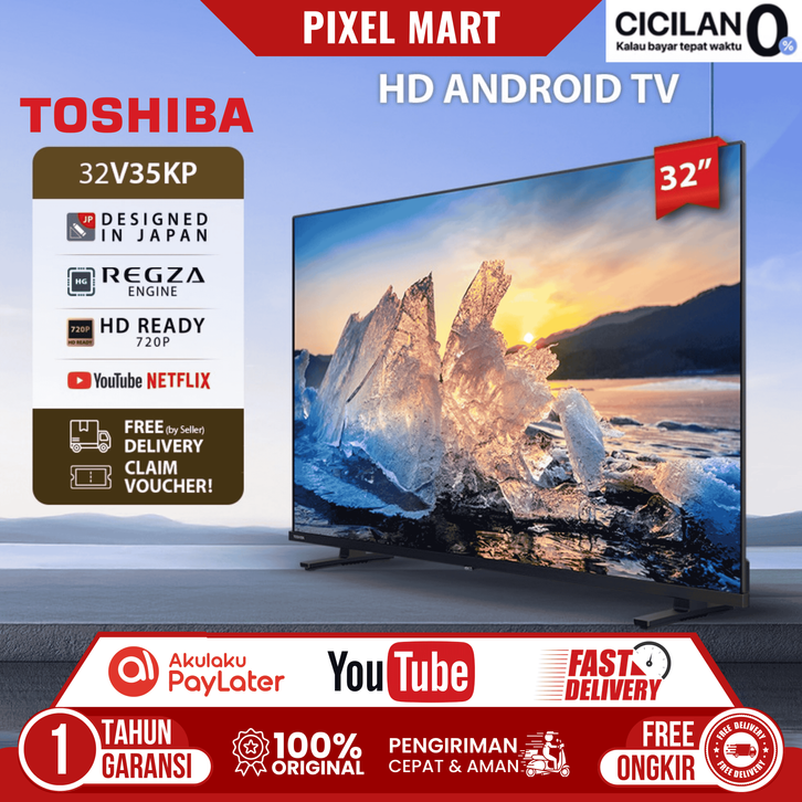 TOSHIBA SMART ANDROID TV 32 INCH HD GOOGLE NETFLIX YOUTUBE DOLBY AUDIO WIFI BLUETOOTH GARANSI 1 TAHUN MURAH TELEVISI NEW