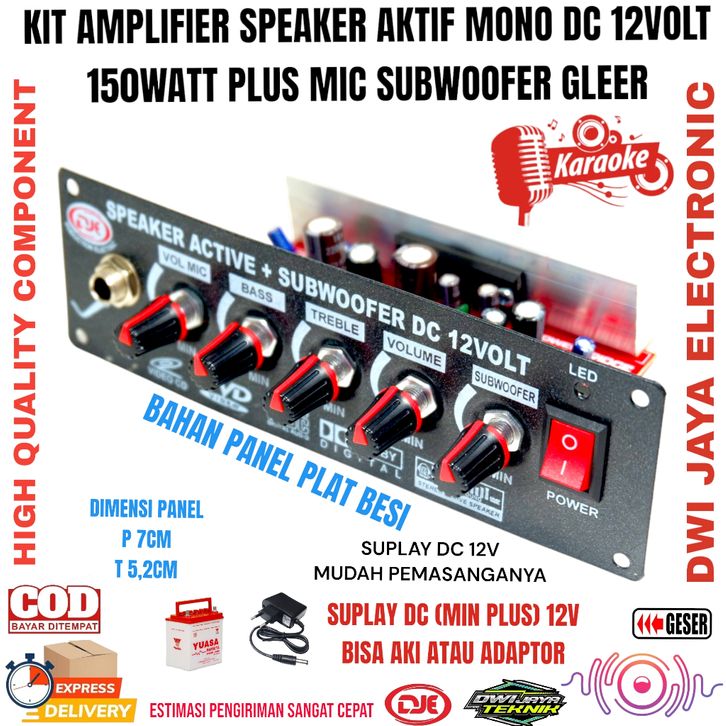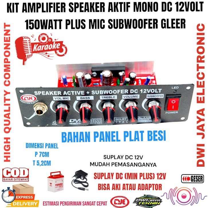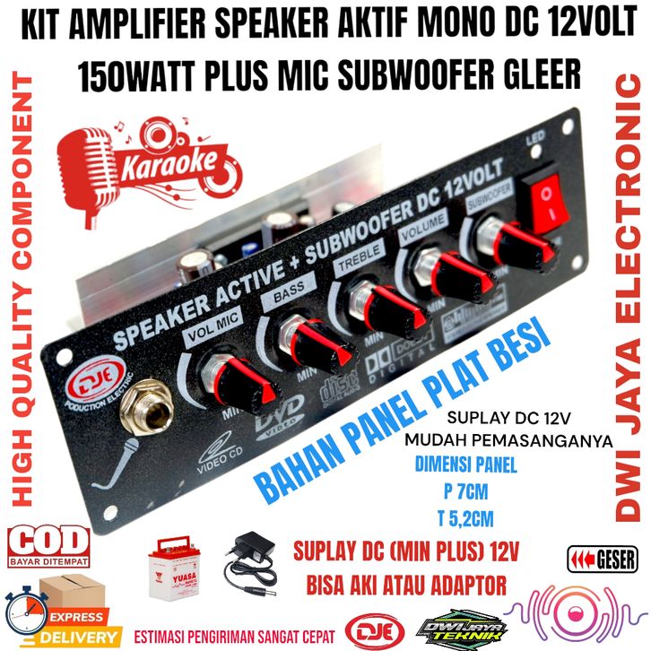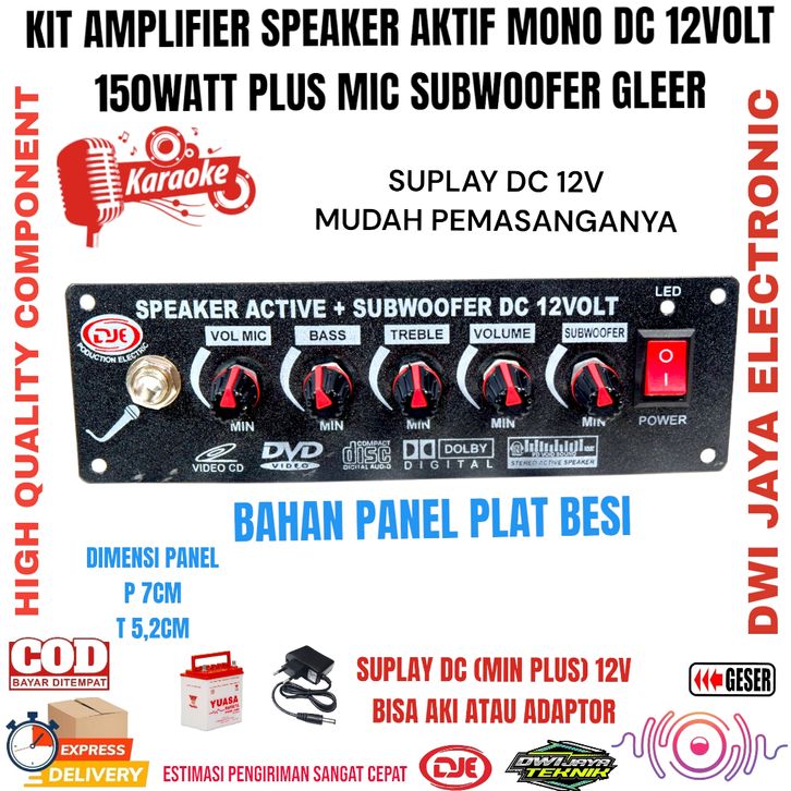 Kit Amplifier Speker Active Mono DC 12VOLT 150Watt Plus Mic Subwoofer