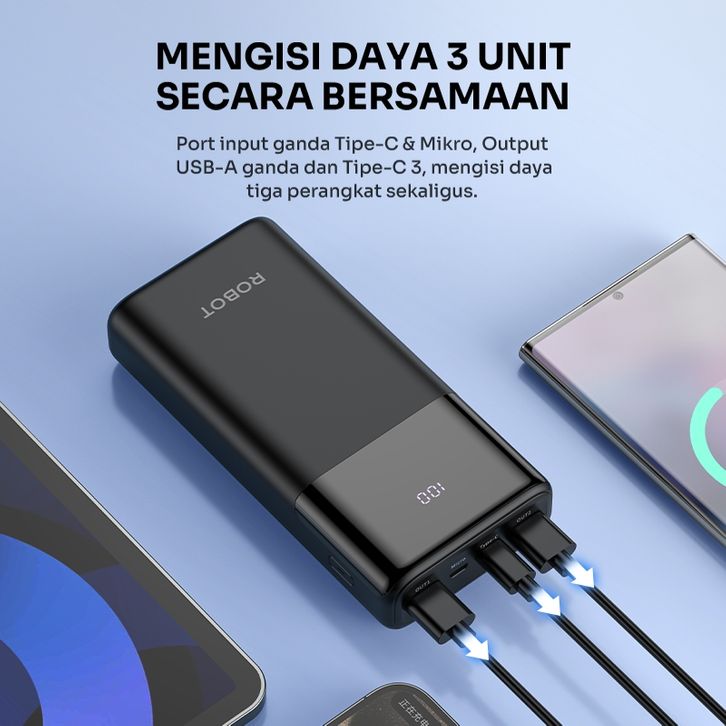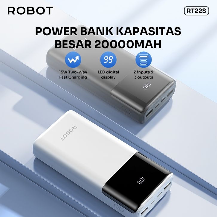 POWER BANK ROBOT ORIGINAL / POWER BANK FAST CHARGING / POWER BANK ROBOT ORIGINAL 20000MAH NEW RT22S 15W 3 PORT OUTPUT