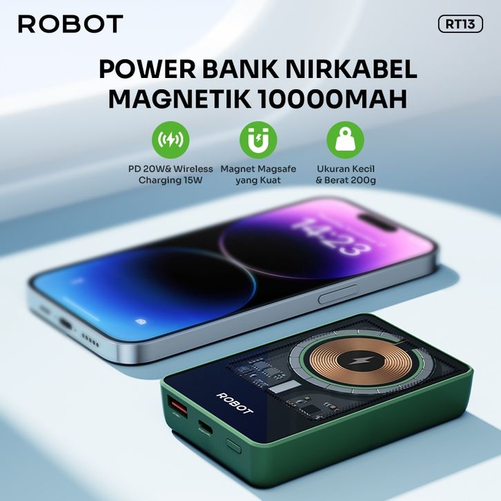Powerbank Magnetic Robot 10000 mAh PD 20W Magsafe Fast Charging Original