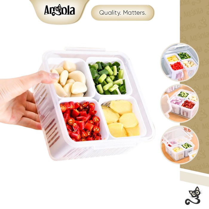 ANGOLA KOTAK SARINGAN WADAH BAWANG 4 SEKAT TEMPAT BUAH SAYURAN DENGAN PENUTUP L13 - 4 SEKAT