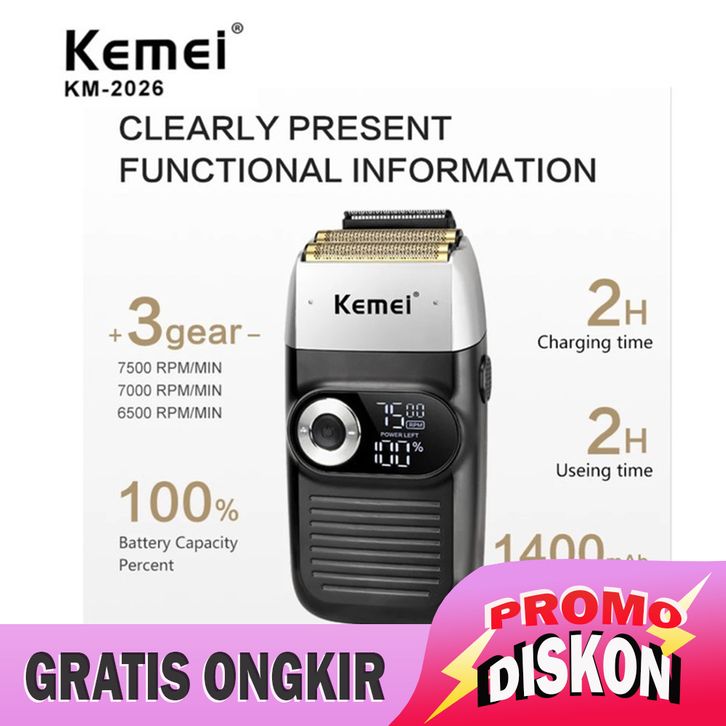 100% Alat Cukur Rambut Botak Kemei KM-2026 Hair Clipper Razor Shaver Twin Blade Cordless Trimmer KM 2026
