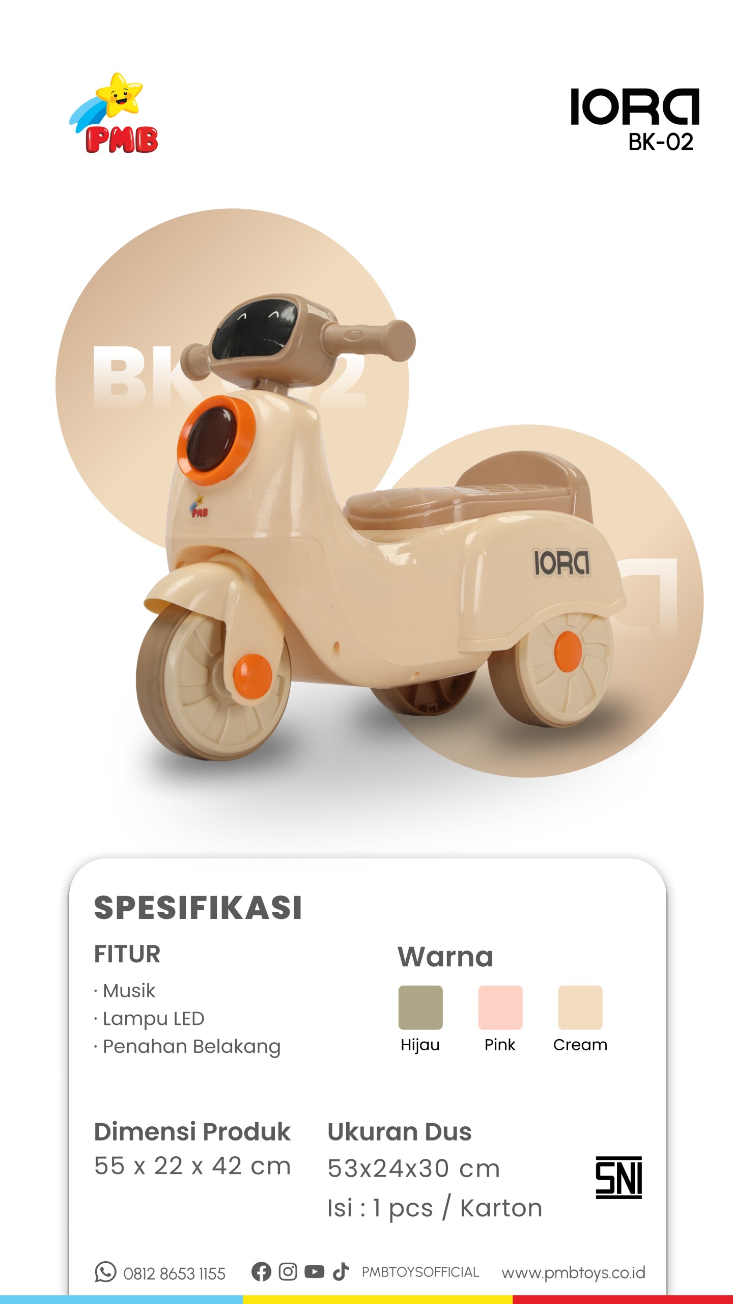 MAINAN ANAK RIDE ON IORA BK02 PMB TOYS IORA BK 02