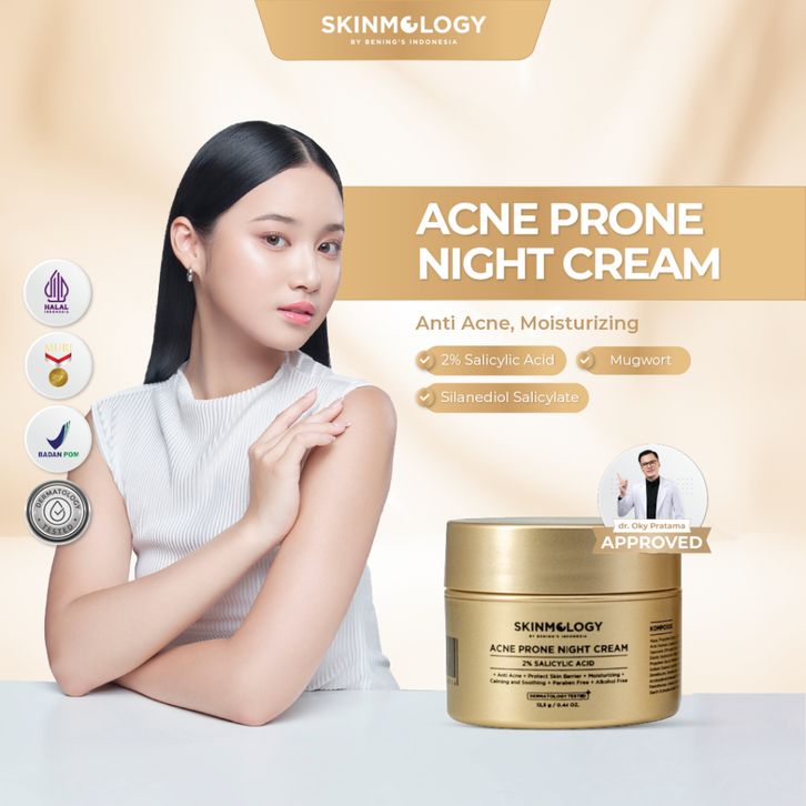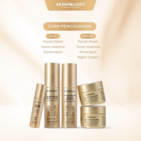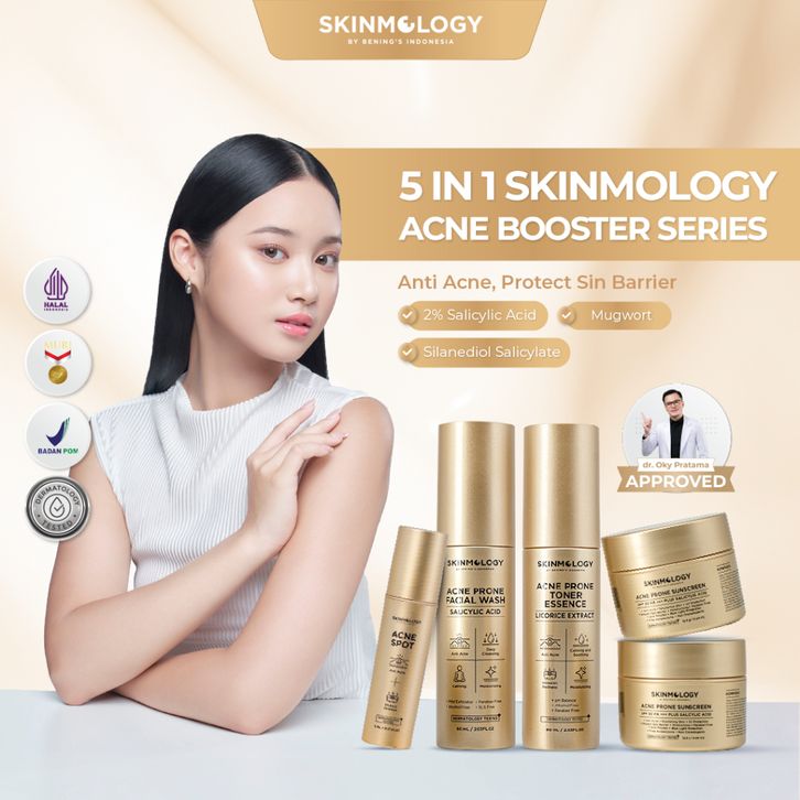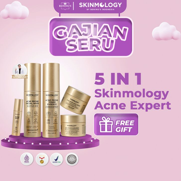 Skinmology By Bening's Clinic Indonesia - Paket 5 in 1 Acne Expert Series - Cream malam - Day Cream - Sabun Muka Face