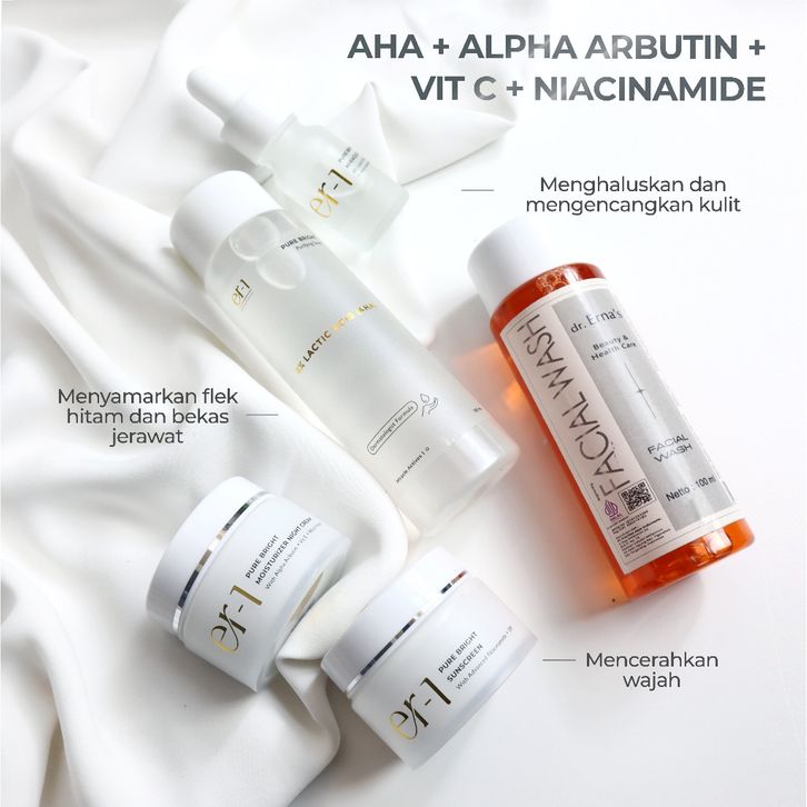 er-1 by dr. Erna Perfect Pure Bright Set 5 Pcs - Paket Skincare Brightening Pemutih - Serum Night Cream Day Cream Sunsc