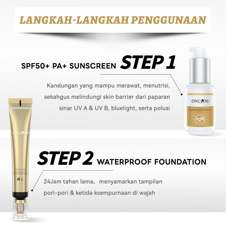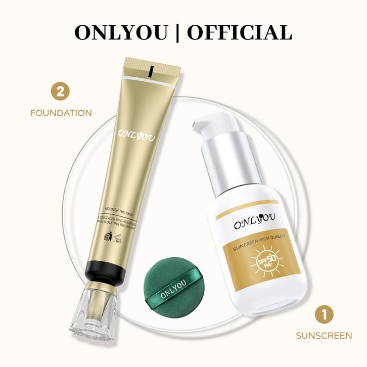 ONLYOU Paket Foundation Concealer Waterproof Foundation & ONLYOU Sunscreen SPF50+ PA+ kosmetik wajah UV sunblock make u