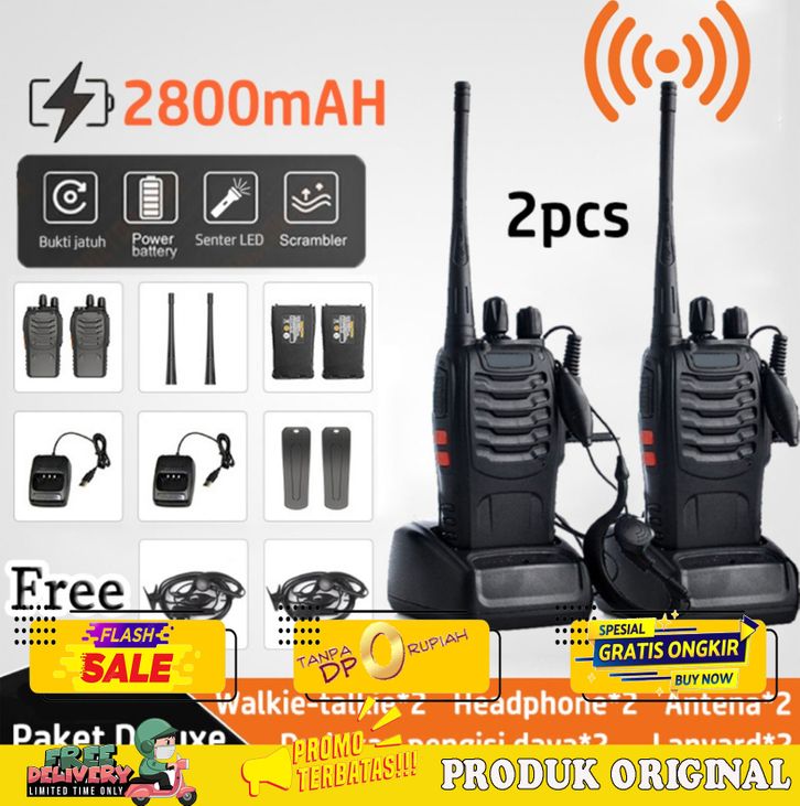 100% Bagus Poweru BF888S Walkie Talkie Jarak Jauh 10km(Max) 2800mAH HT Wlan UHF 2 Units Handy Talky