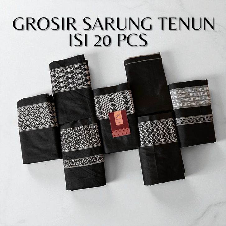 Grosir Sarung Tenun Hitam Polos Bahan Poly Pe 20Pcs
