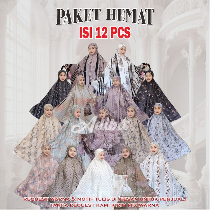PAKET HEMAT 12 PCS | Mukena Travel Motif Mini Pouch 2in1 Resleting Katun Premium