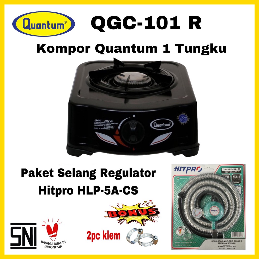 Paket Kompor Gas Quantum 1 Tungku QGC-101R BONUS Regulator Selang Gas HITPRO / HLP-5A-CS / HLP-5E-CS