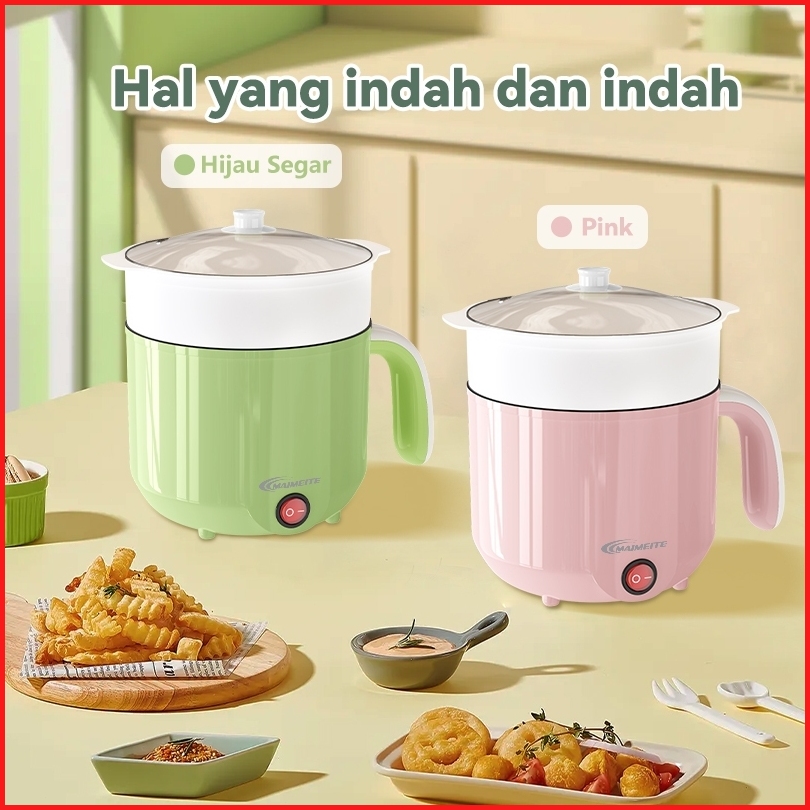 Maimeite Panci Listrik Serbaguna 1.8l Multifungsi Stainless Panci Elektrik Non-stick