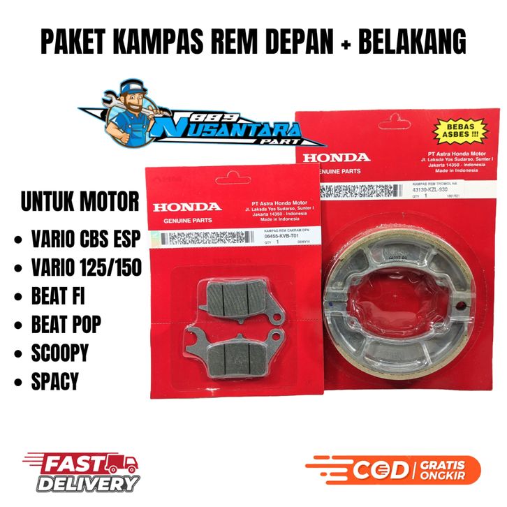 PAKET KVB HEMAT KAMPAS REM DEPAN+BELAKANG BEAT / VARIO / SCOOPY / SPACY / VARIO 125 150 / BEAT POP
