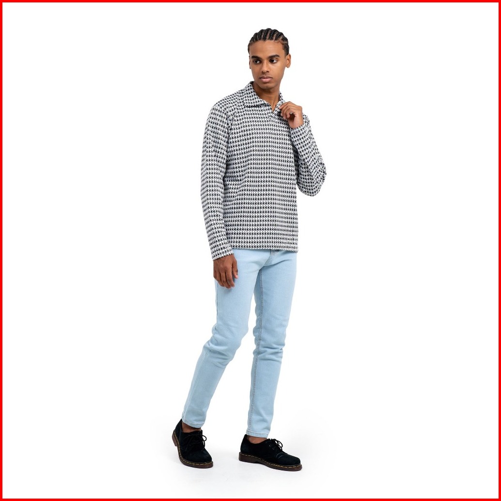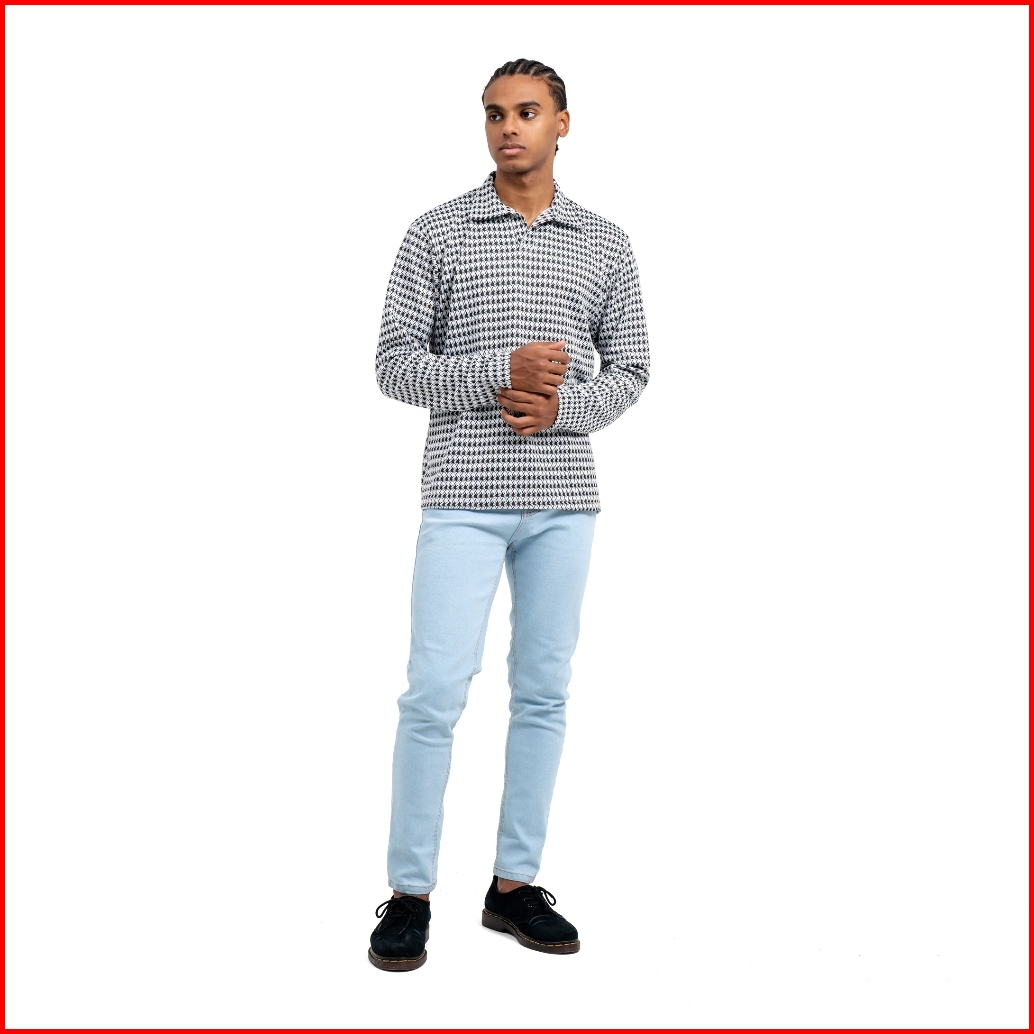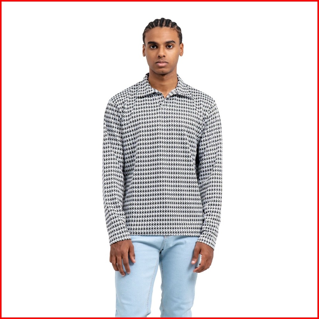 Ribsgold Polo Shirt Pria Adorn Short Lengan Panjang Katun Strech