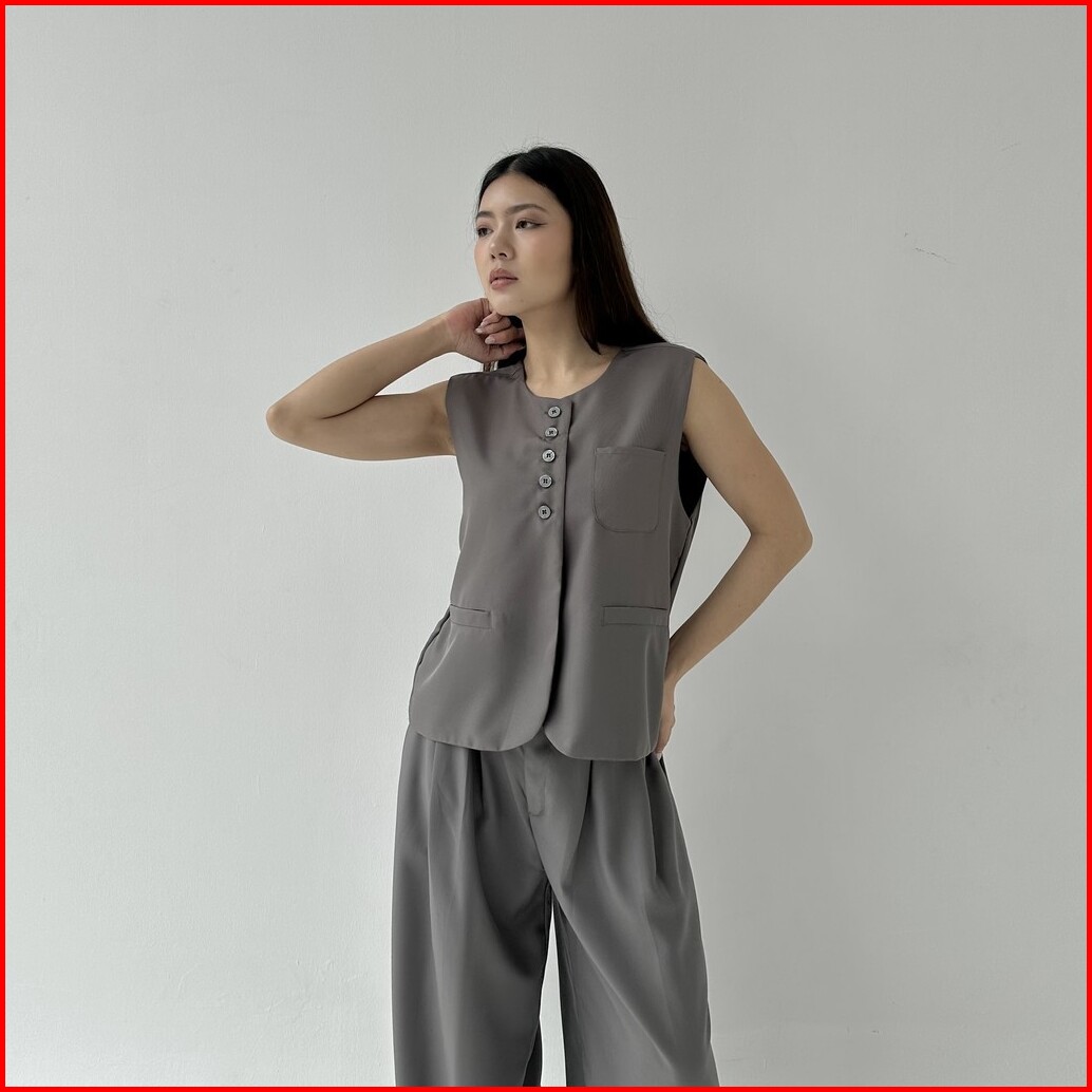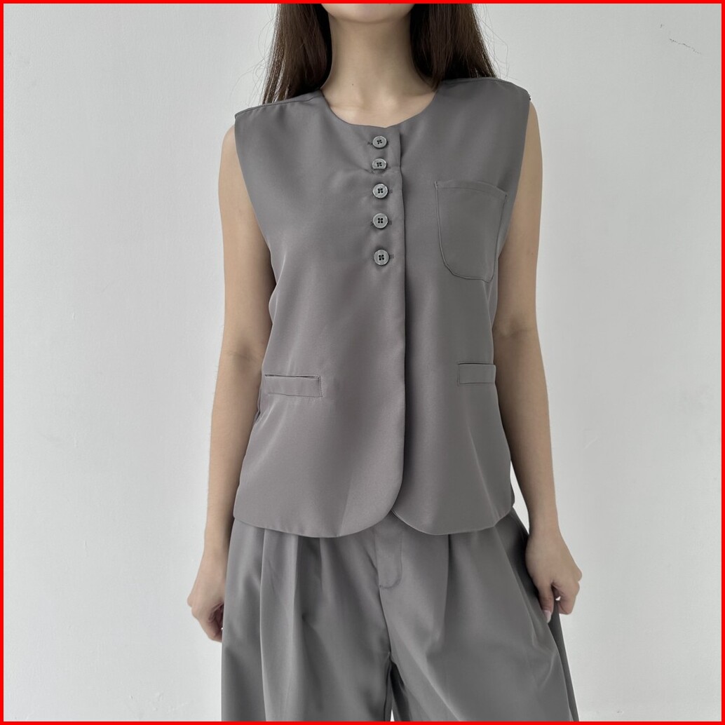 Terre Vest - Vest Outer Rompi Wanita Atasan Crop Top Murah Luaran Oversized Jacket Top Summer Posha