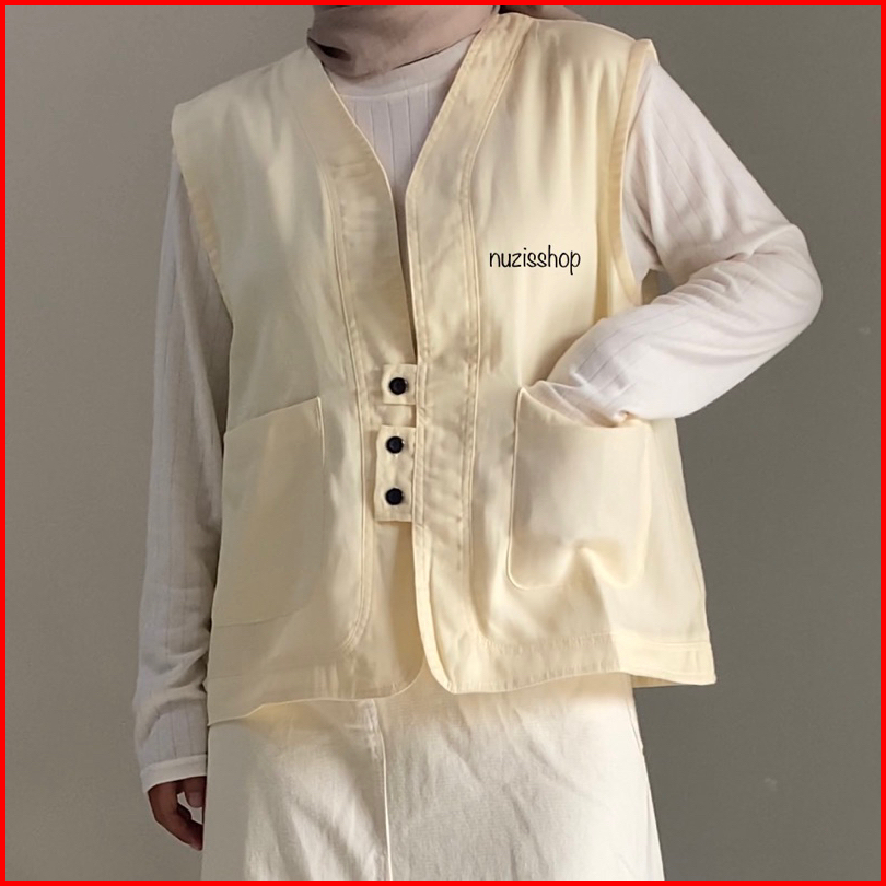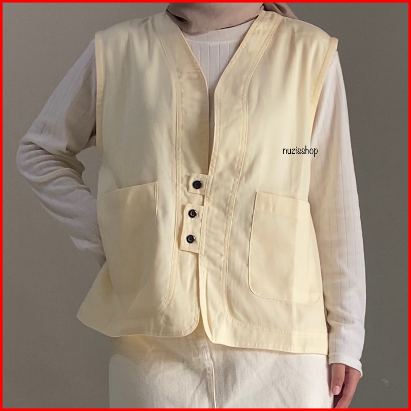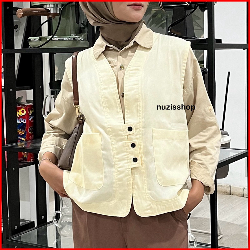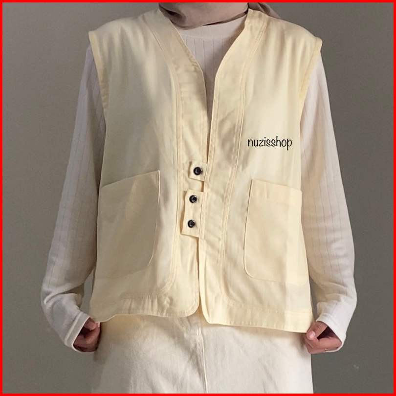Nuzi - Becca Vest Cream Soft Jeans Semi Twill Premium Kemeja Rompi Outer Wanita Atasan Top Murah Woman Import Korean Sty