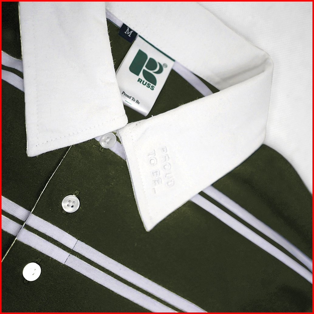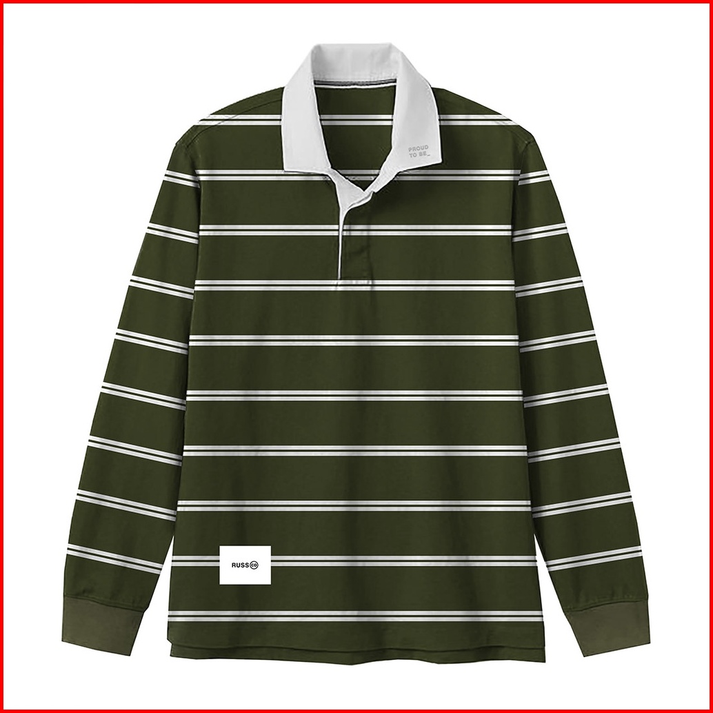 Russ Poloshirt Rugby Pria Stripe Garis Scrum Olive Up To Big Size