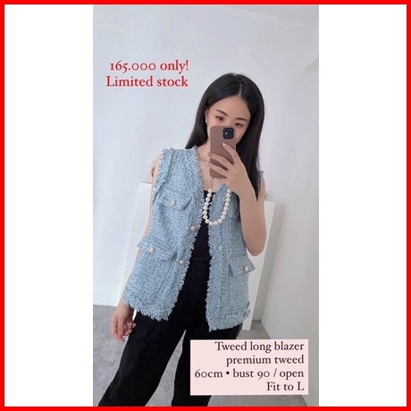 Long Tweed Blazer Vest Hello Bangkok Readystock 5571