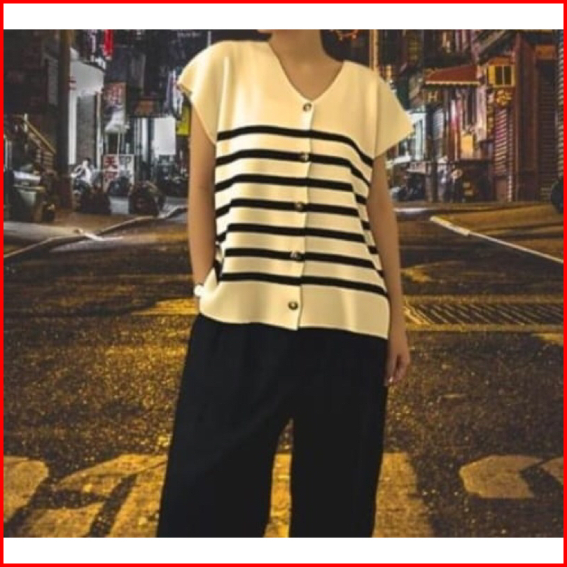 Kimol Vest Cardigan Wol Garis-garis Wanita