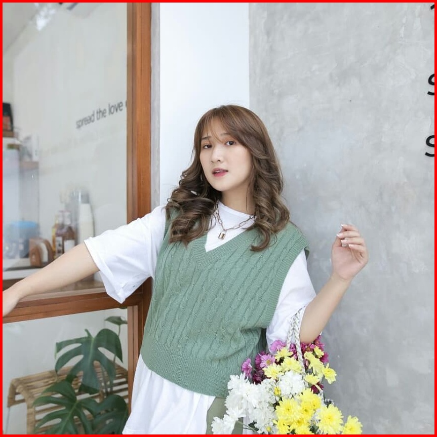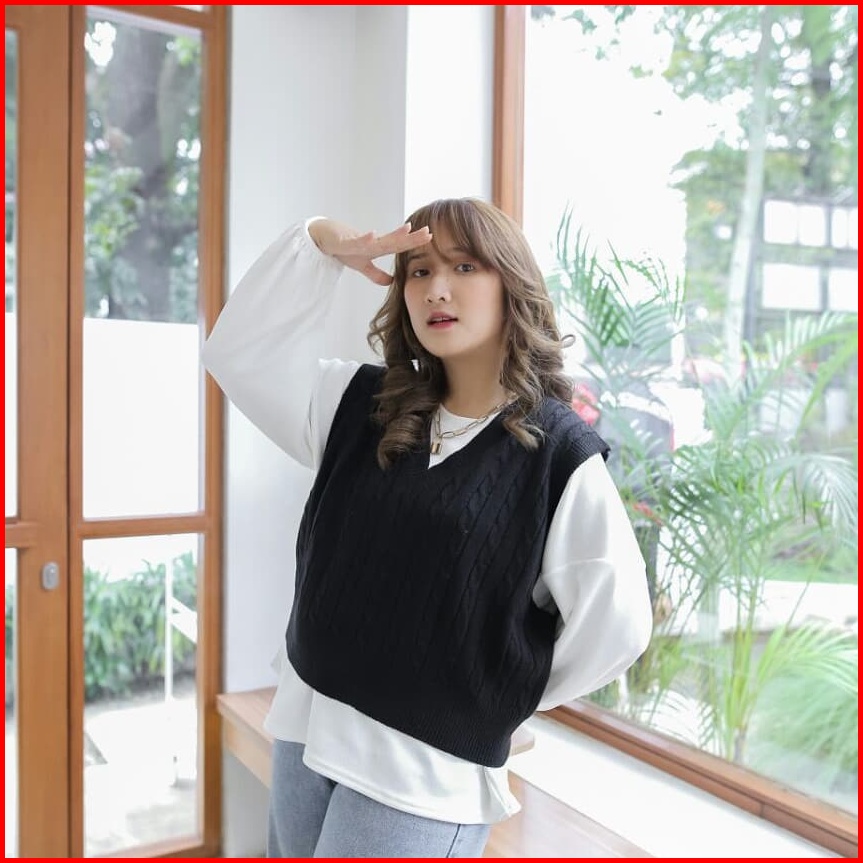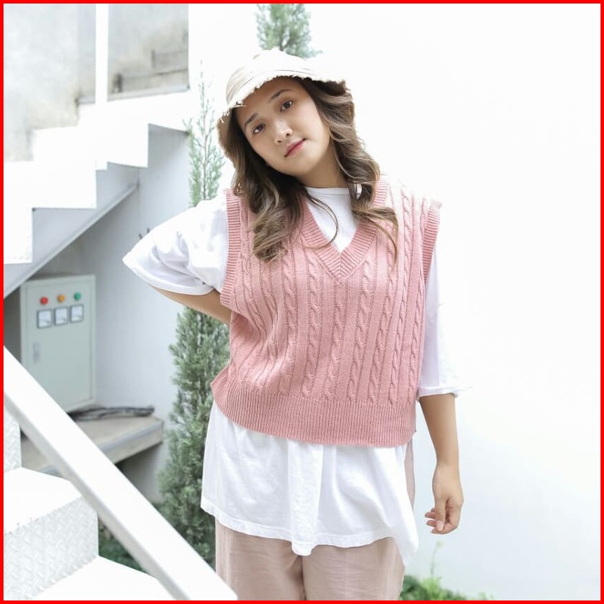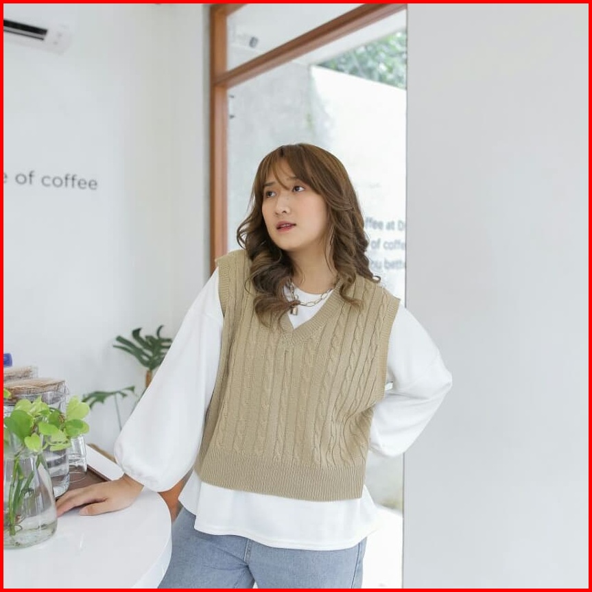 Ryzkia Fashion Rompi Rajut Jumbo Honey Terbaru - Vest Cable Wanita Polos Murah - Luaran Jumbo Fit To Xxl Ld 110 Cm - Kek