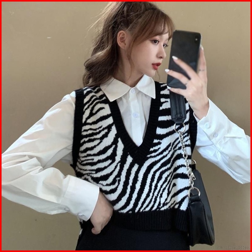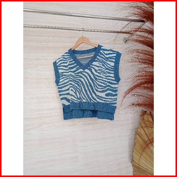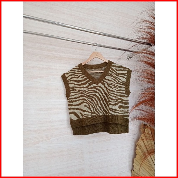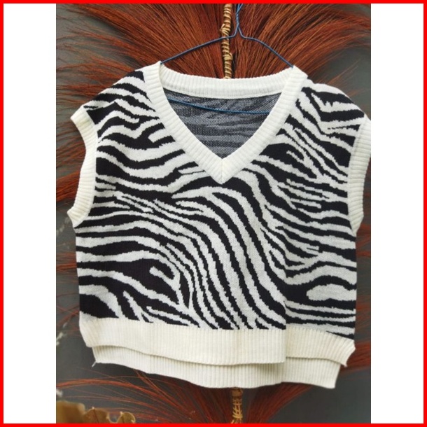 Zebra Crop Vest Wanita Rajut Import Korean Premium V Neck