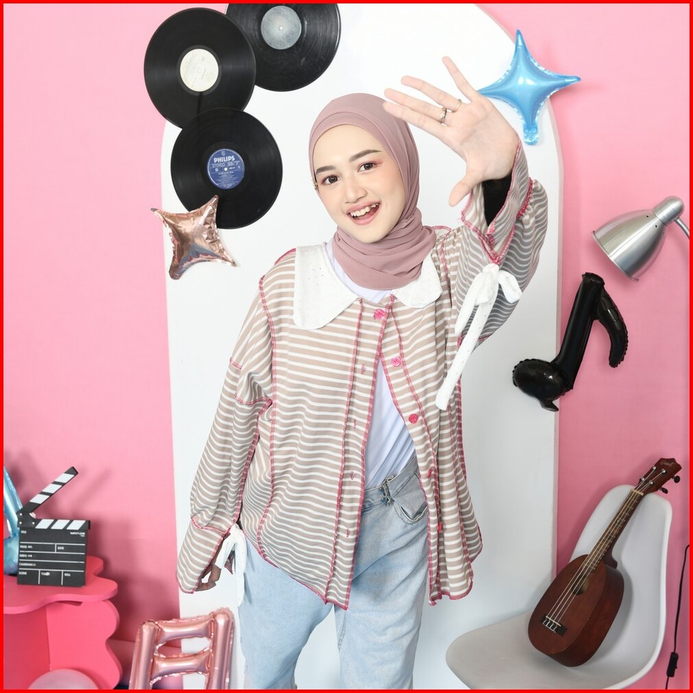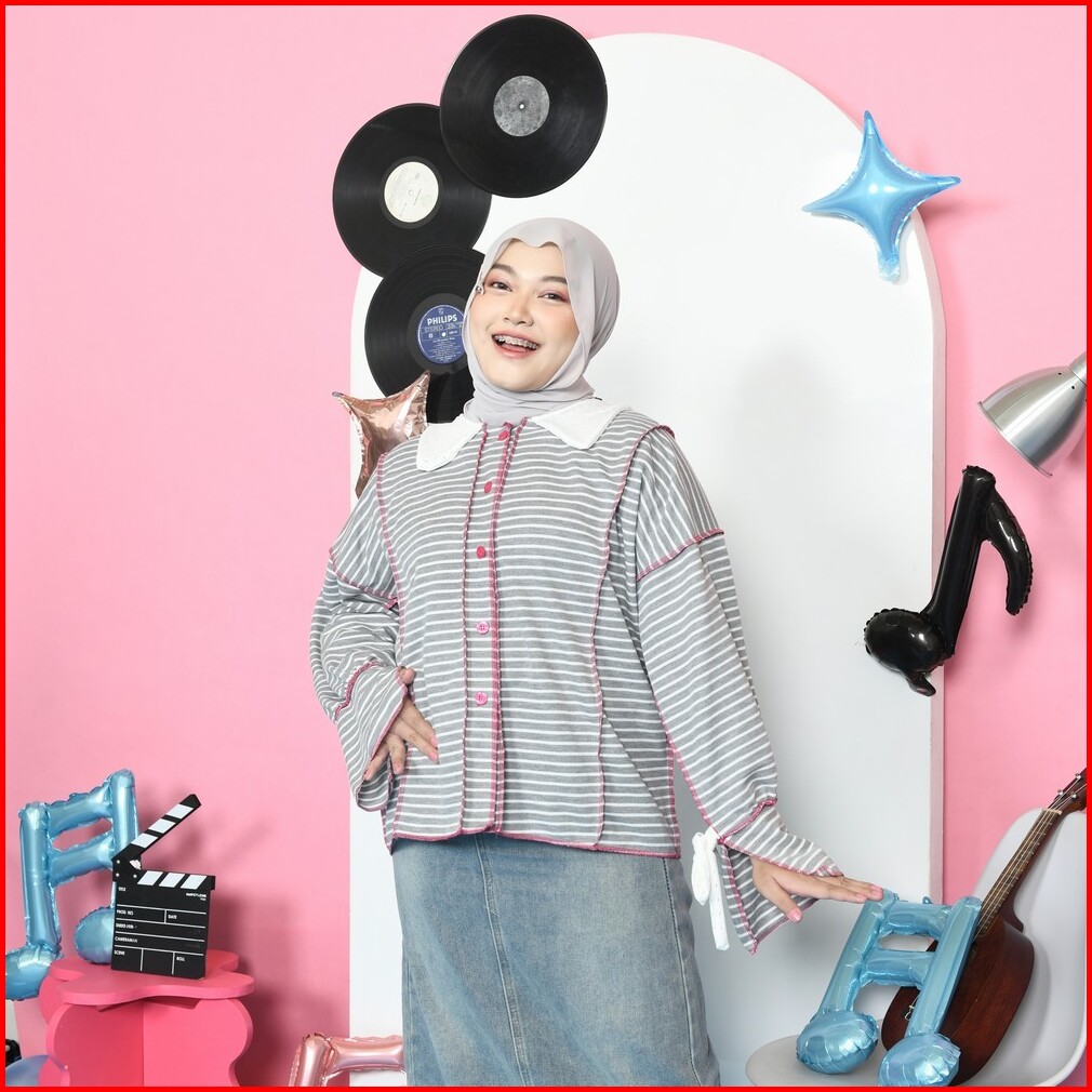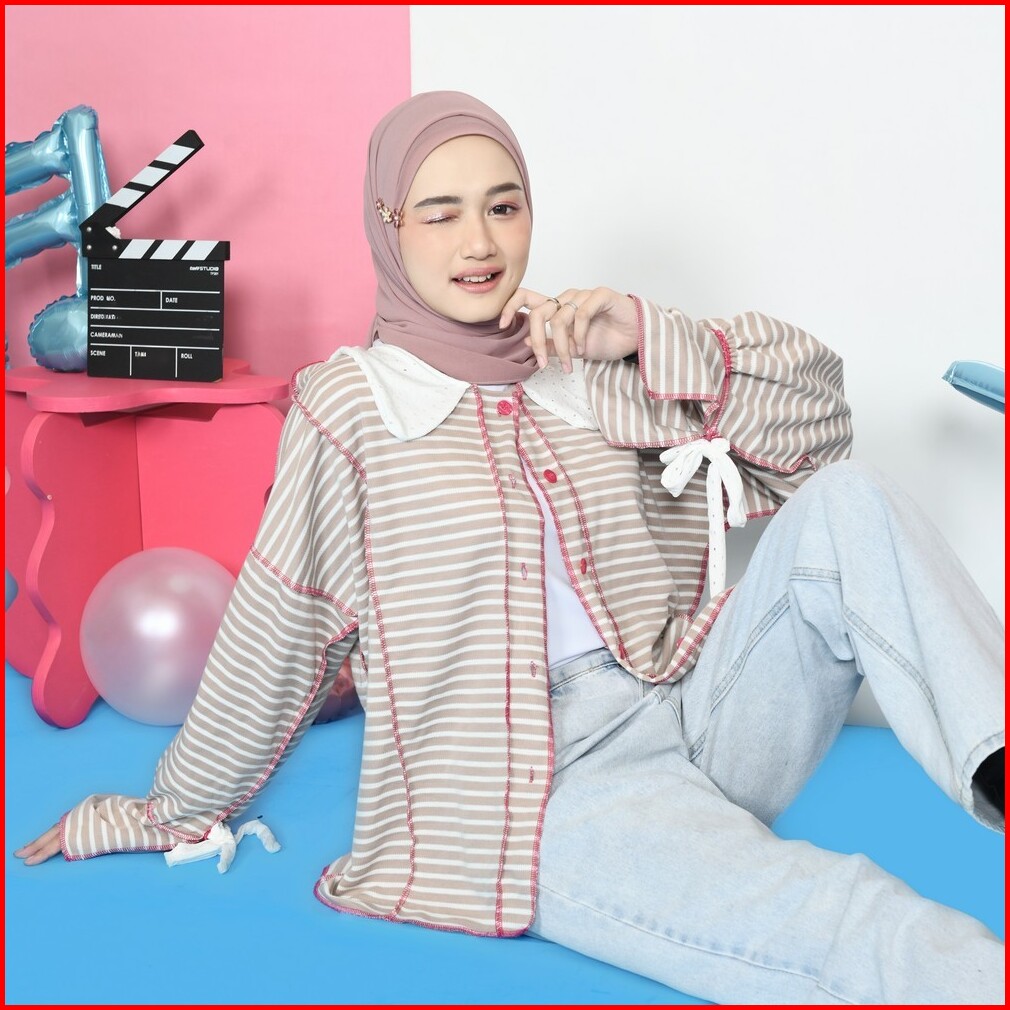 Mybamus X Paa Geulis Playfull Tops Atasan Wanita Kekinian Outer Kancing Lengan Panjang