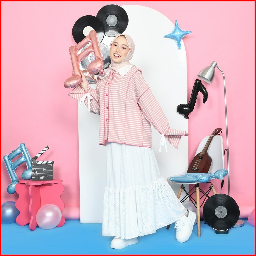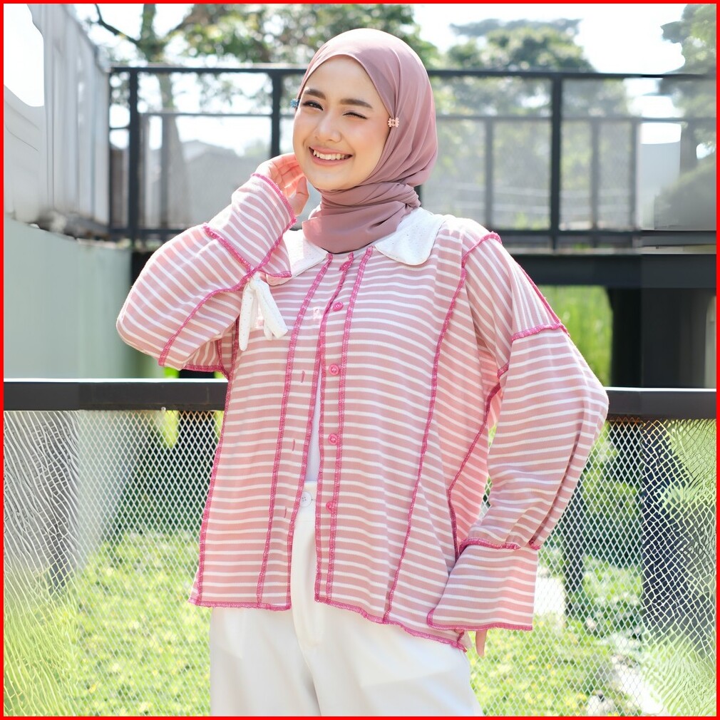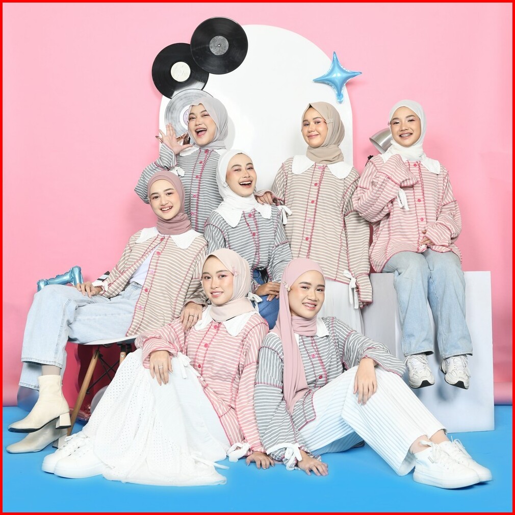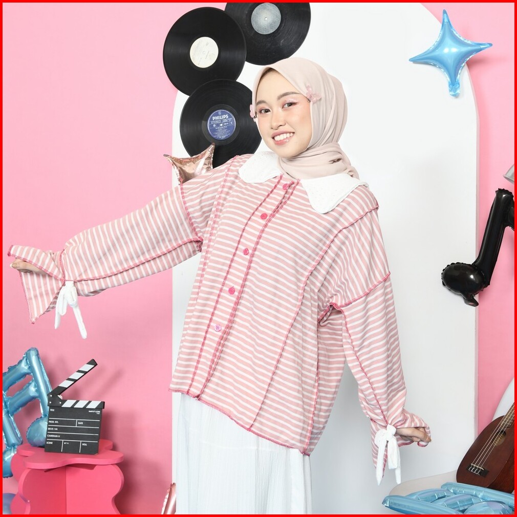 Mybamus X Paa Geulis Playfull Tops Atasan Wanita Kekinian Outer Kancing Lengan Panjang