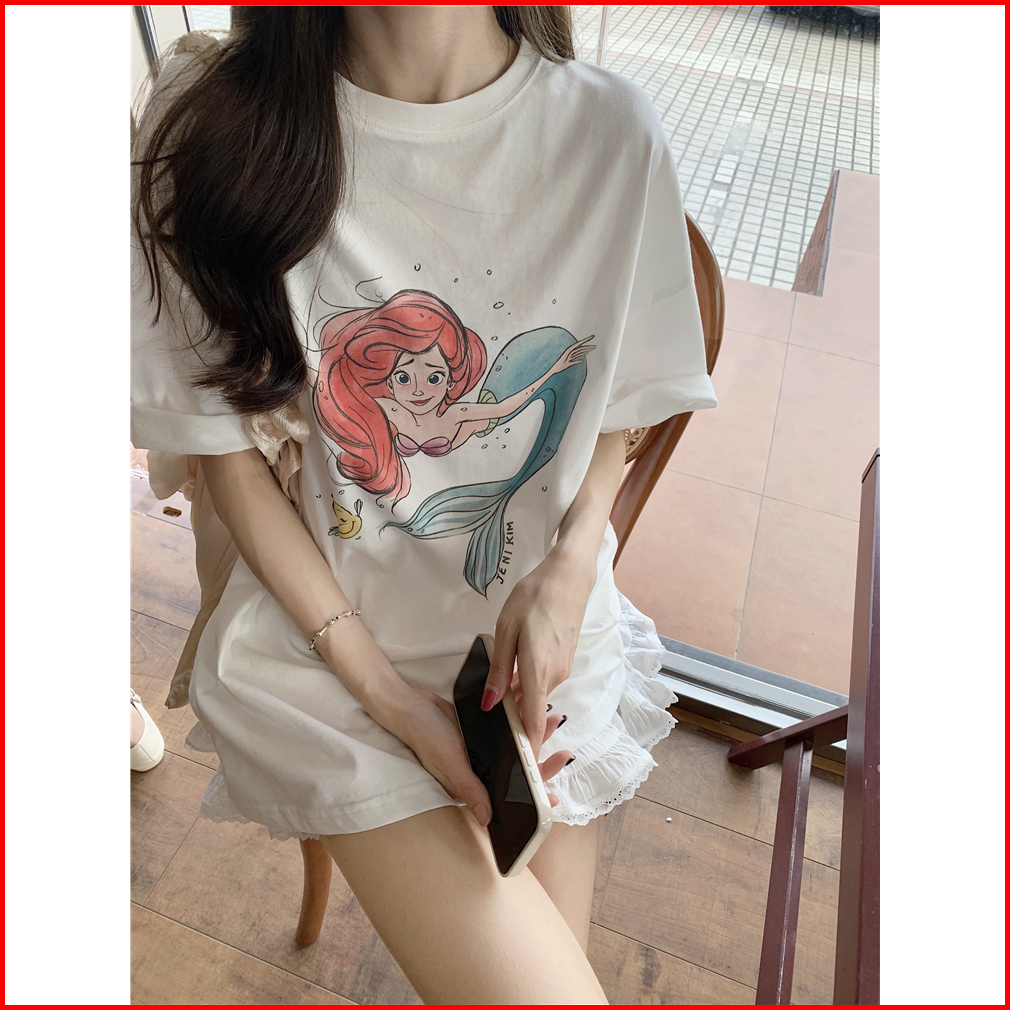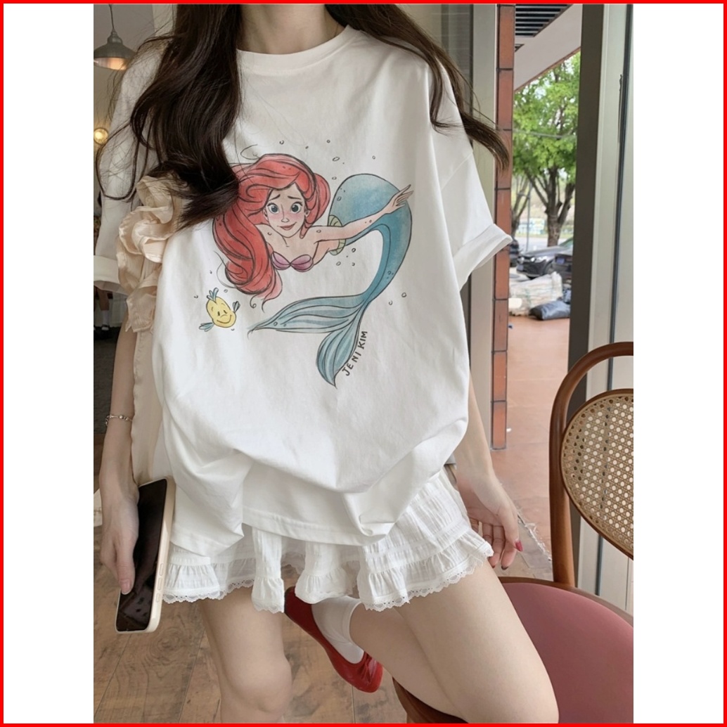 The Monseur Gallery T-shirt Oversize Starry Sky Kartun Putri Duyung Versi Korea Kaos Wanita Biru