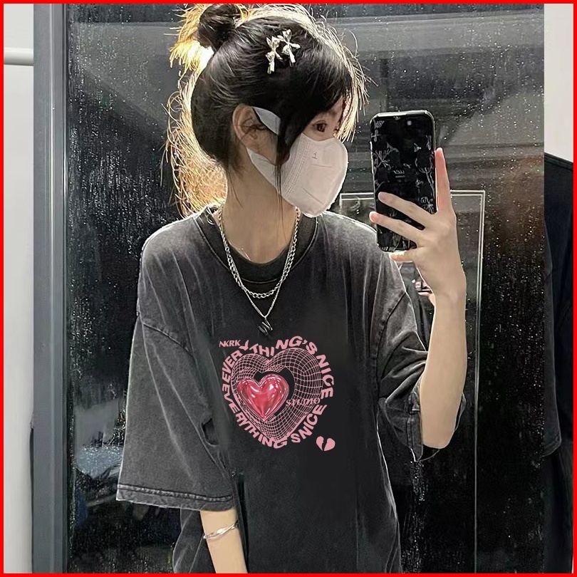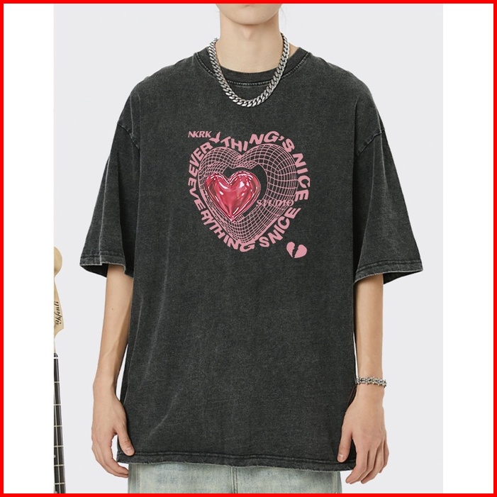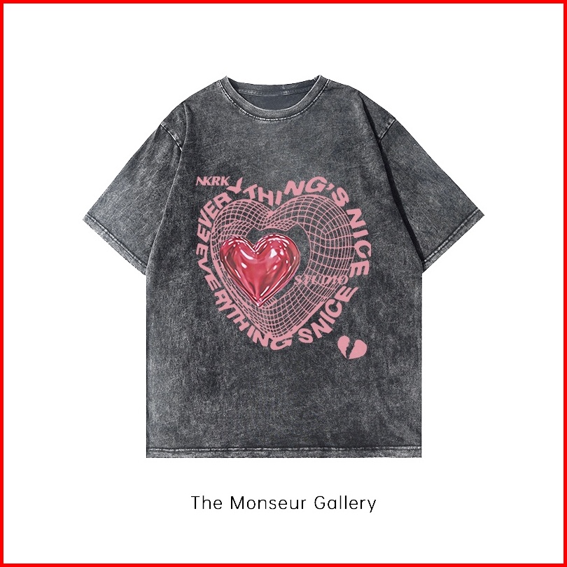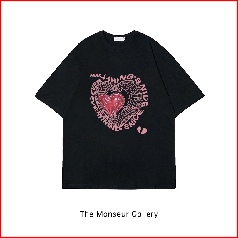 The Monseur Gallery T-shirt Washed Oversize Pink Love Kaos Hitam A0112