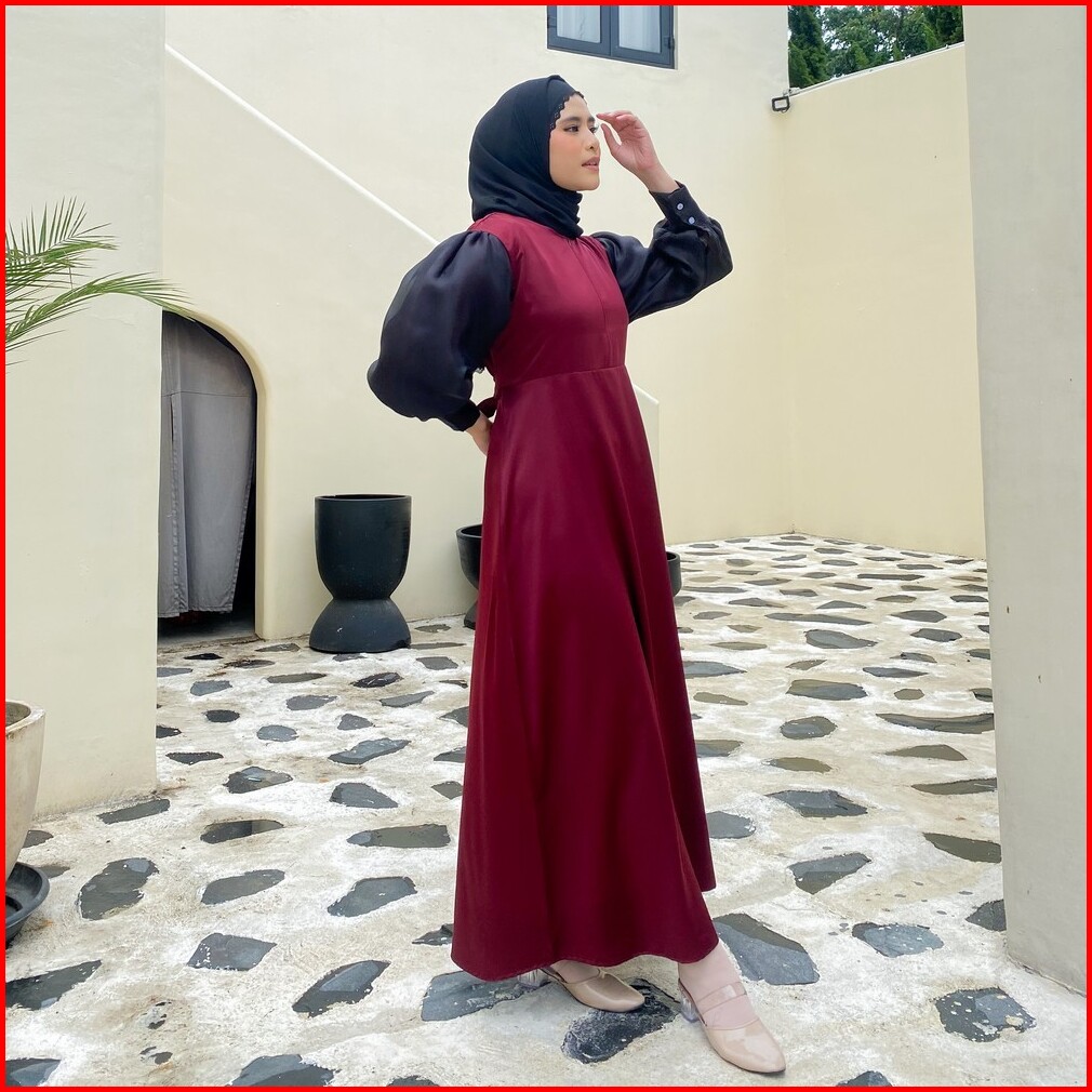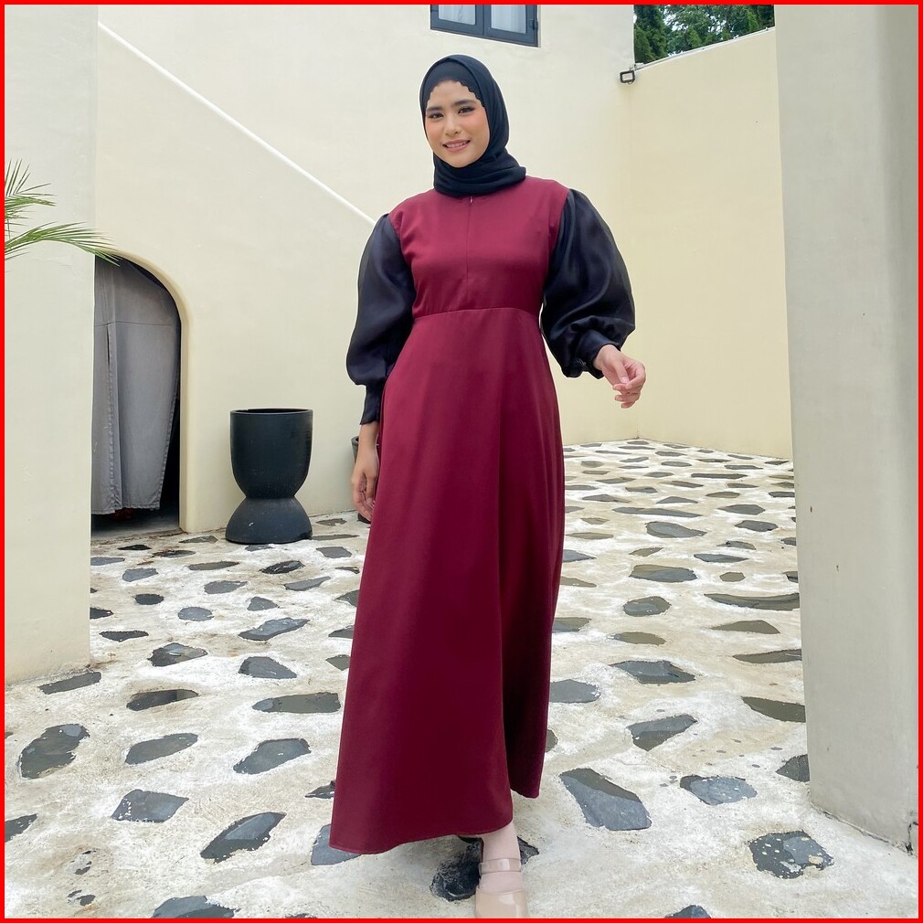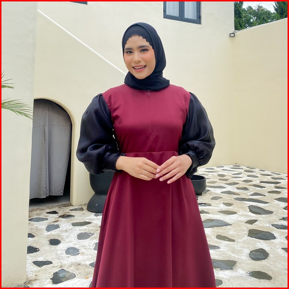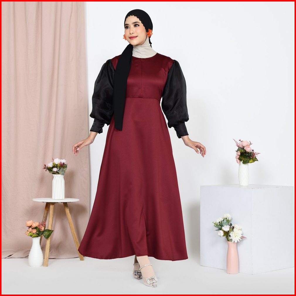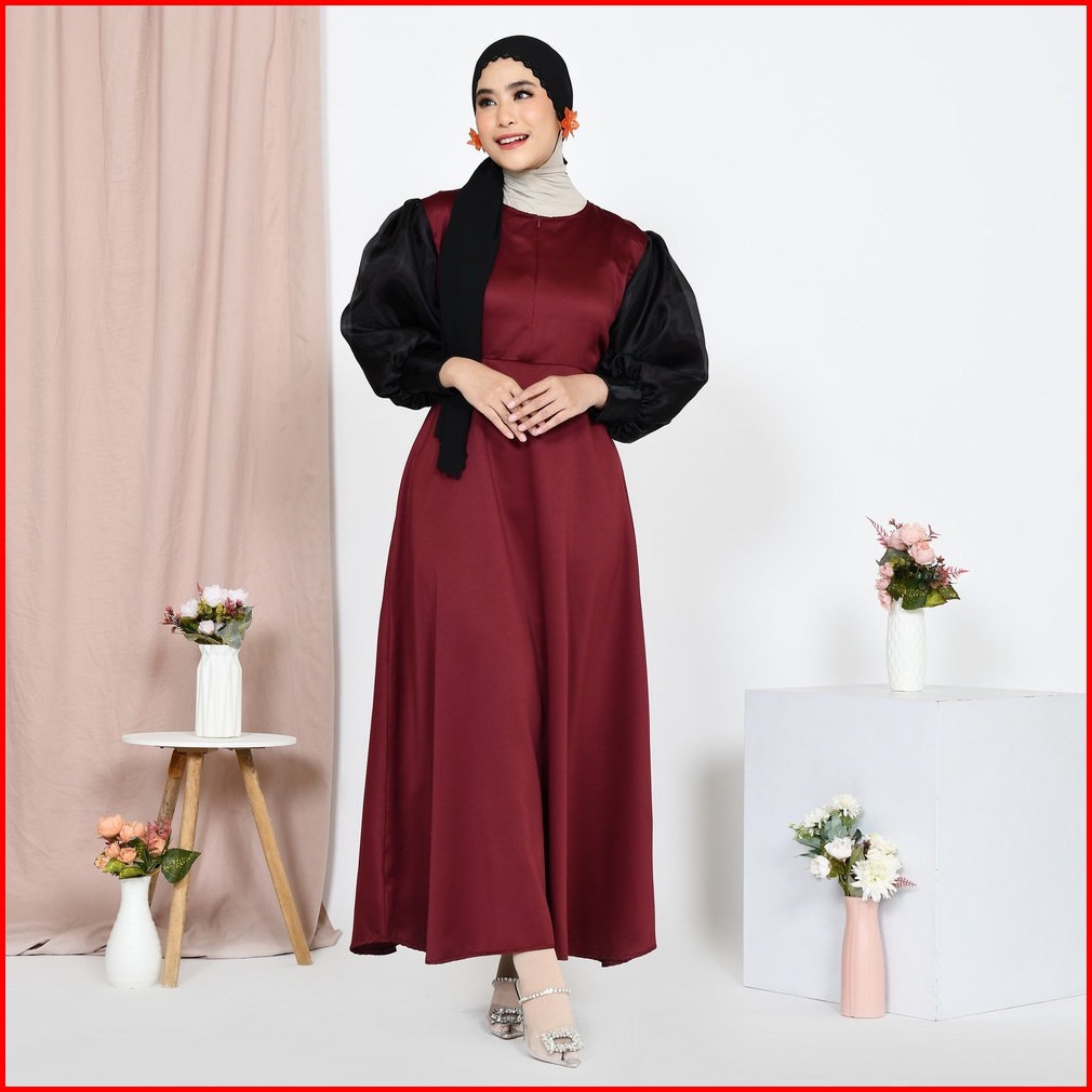 Mybamus Morin Balloon Dress Dress Satin Organza Gamis Hitam Dress Kondangan