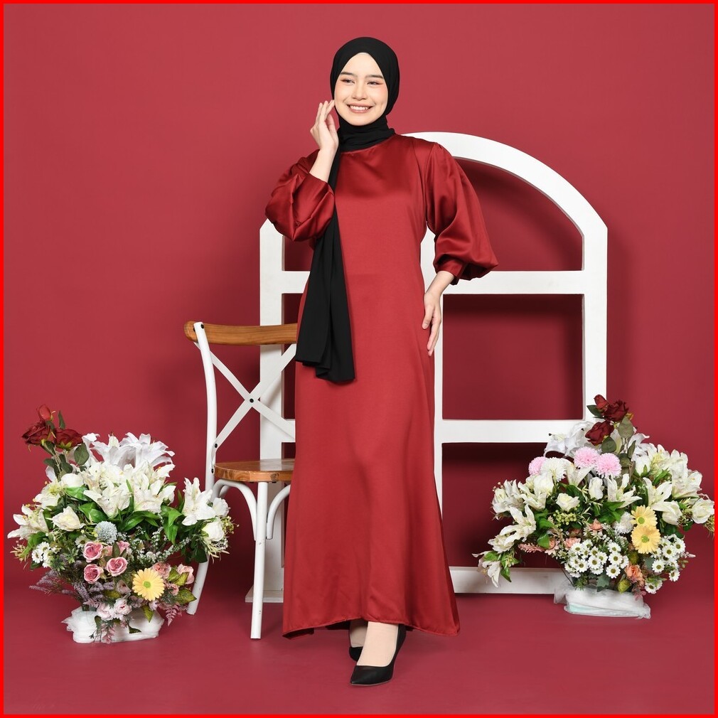 Mybamus X Rafikarahma - Ariel Shiny Dress - Gamis Satin Maxi Dresspanjang Gamis Lebaran 2025
