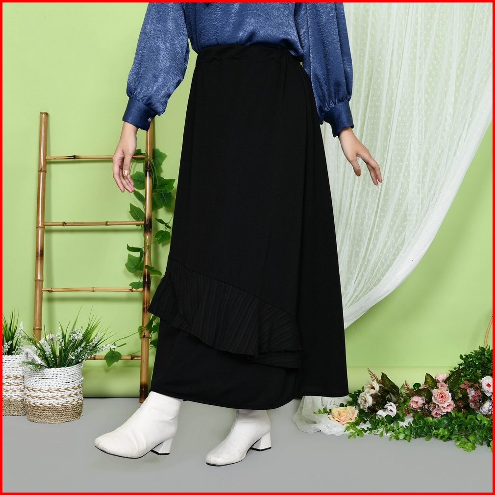 Mybamus X Tikafisi - Ameena Ruffle Skirt - Rok Muslim Wanita - Rok Panjang Kekinian