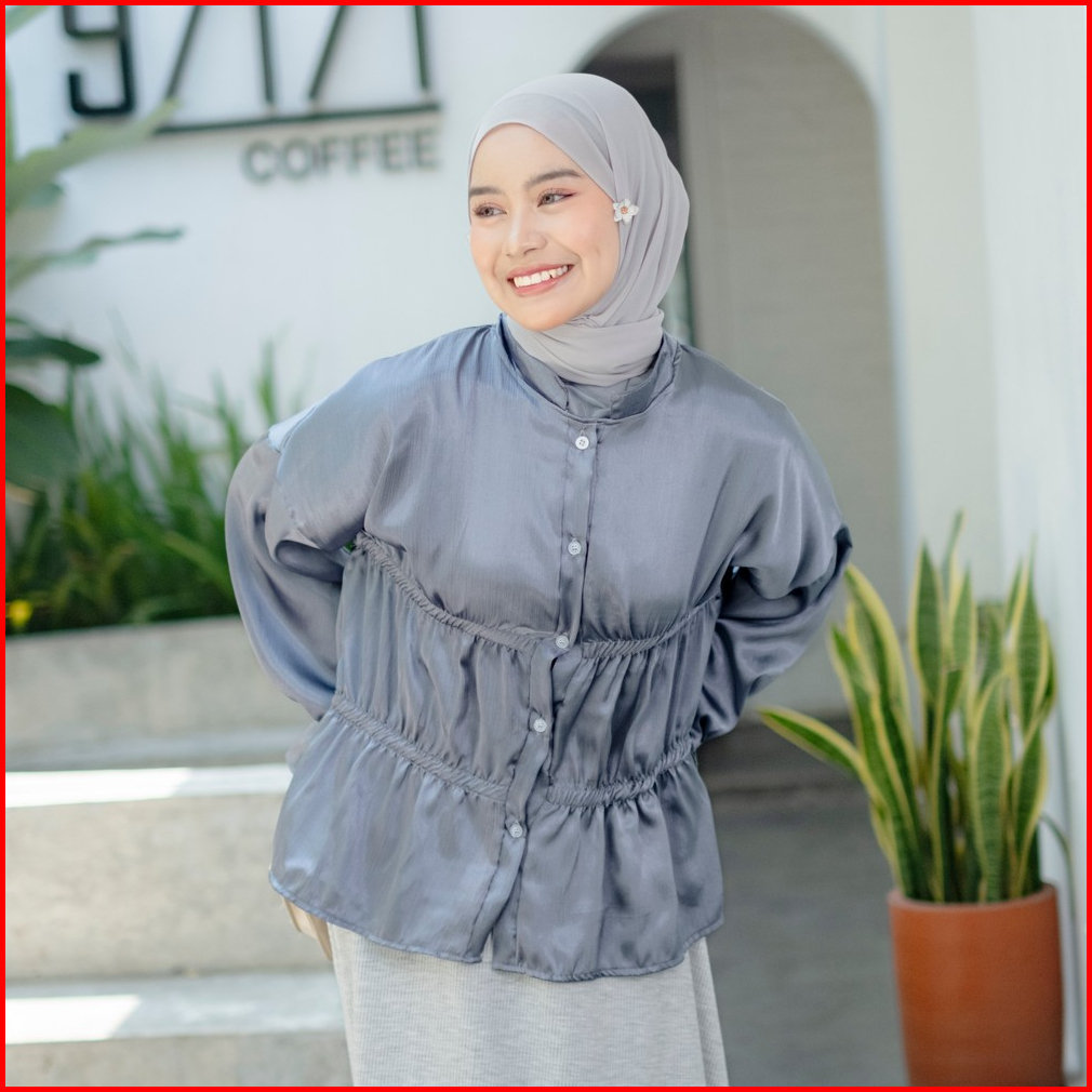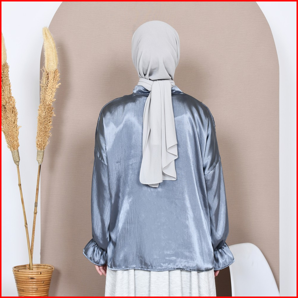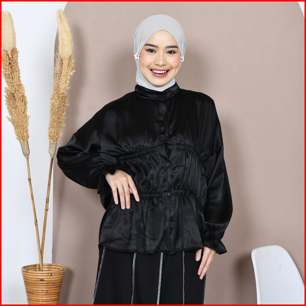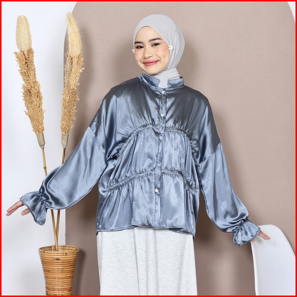 Mybamus Yuma Shimmer Silk Tops - Kemeja Cradenza Wanita - Tops Oversize Wanita - Atasan Kerut
