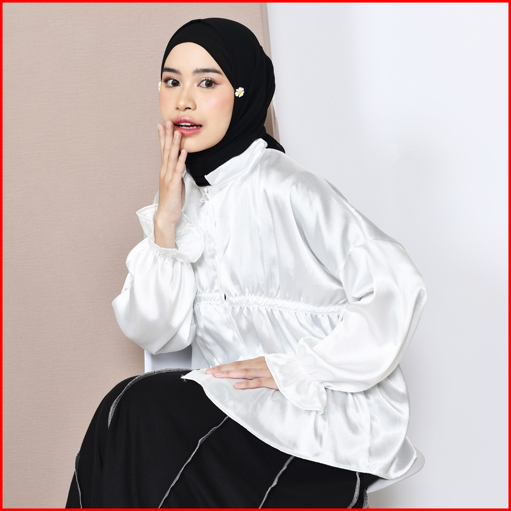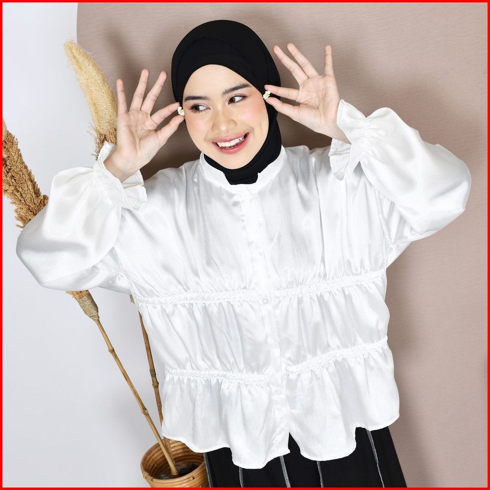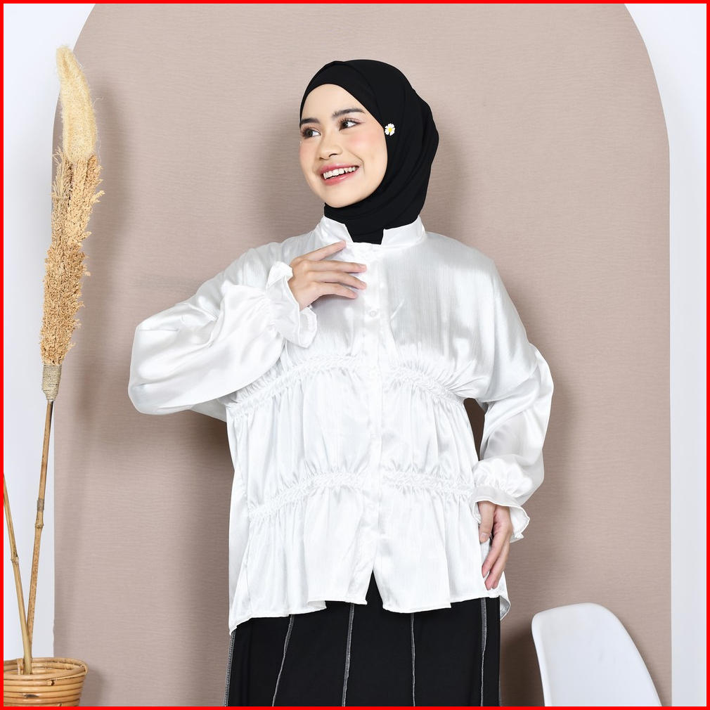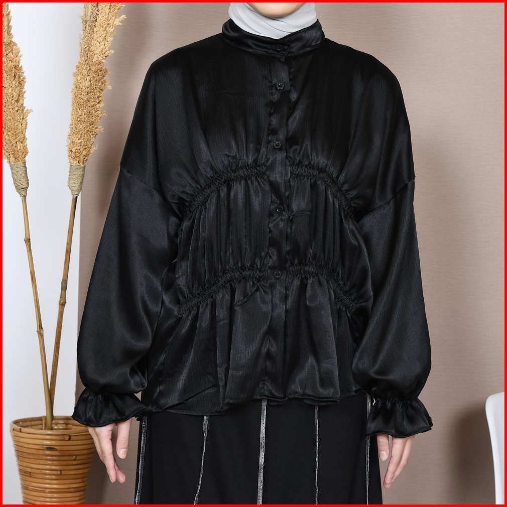 Mybamus Yuma Shimmer Silk Tops - Kemeja Cradenza Wanita - Tops Oversize Wanita - Atasan Kerut