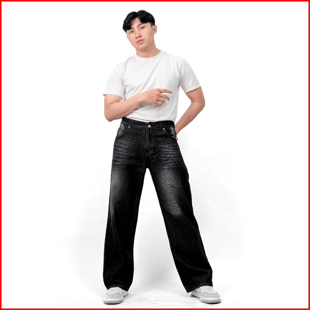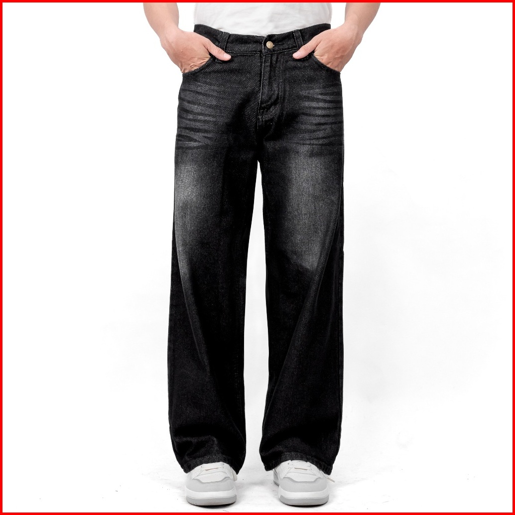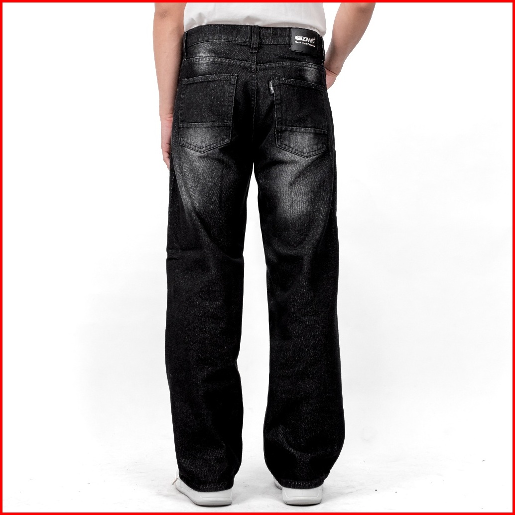 Gizmo - Celana Jeans Wide Leg Wisker Lebar Gombrong Skena Black Wisker Pria Loose Fit Jumbo Big Keren Bahan Denim