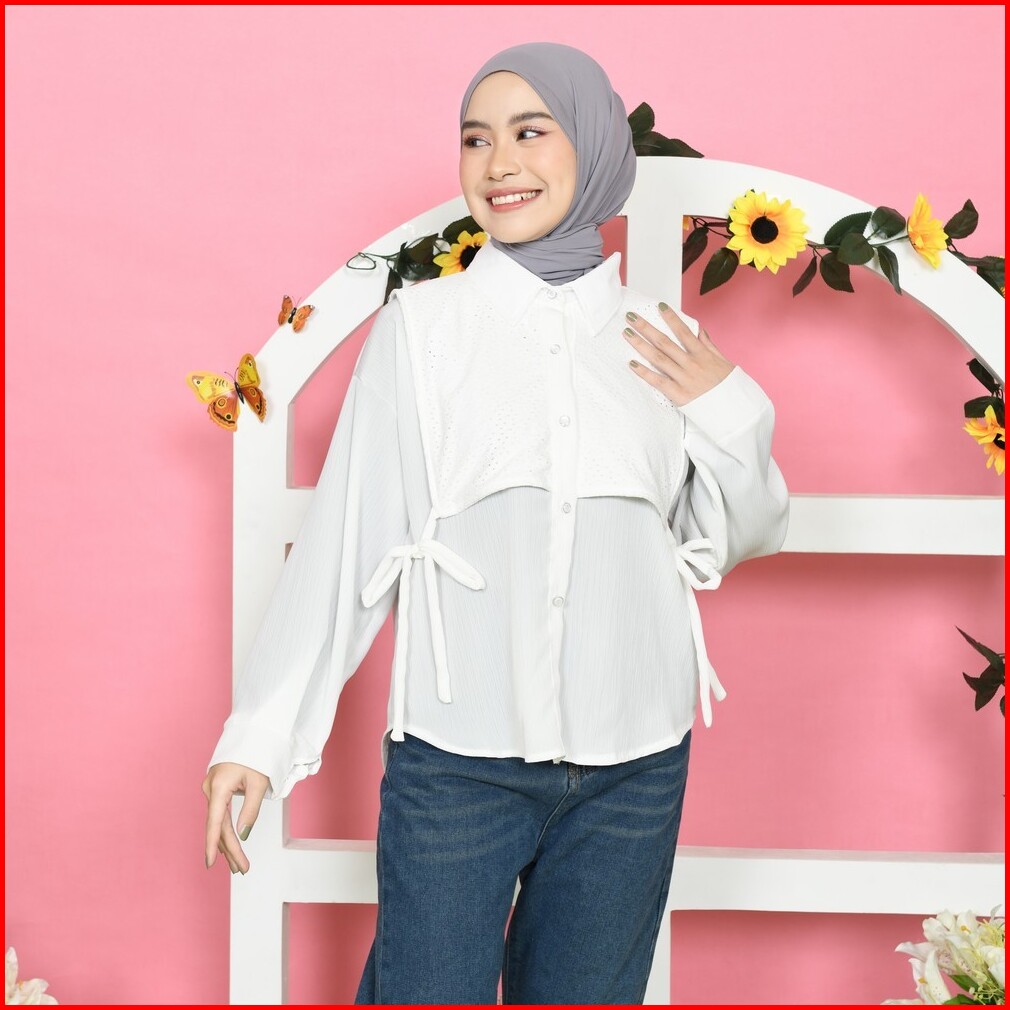 Mybamus Divya 2in1 Kemeja - Kemeja Vest - Kemeja Kerja Wanita - Kemeja Lace Vintage