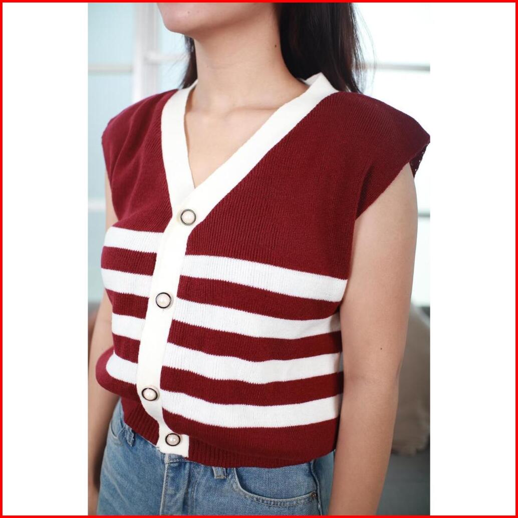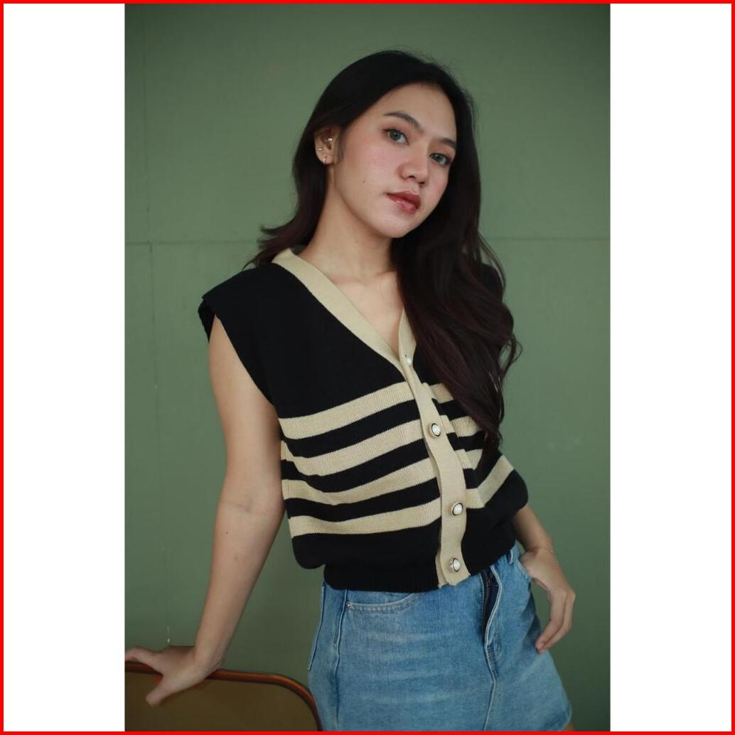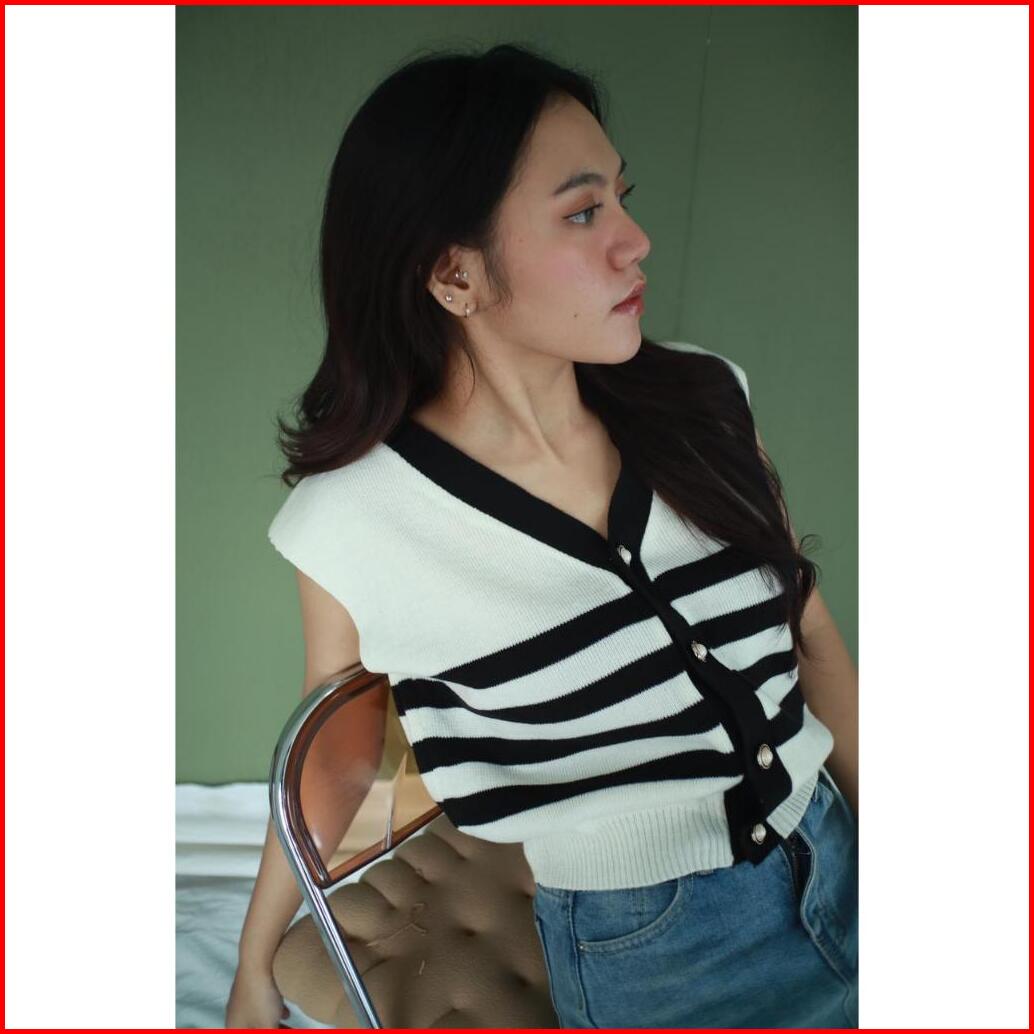 Suzy Vest Women Korean Top Atasan Wanita Rajut Stripes