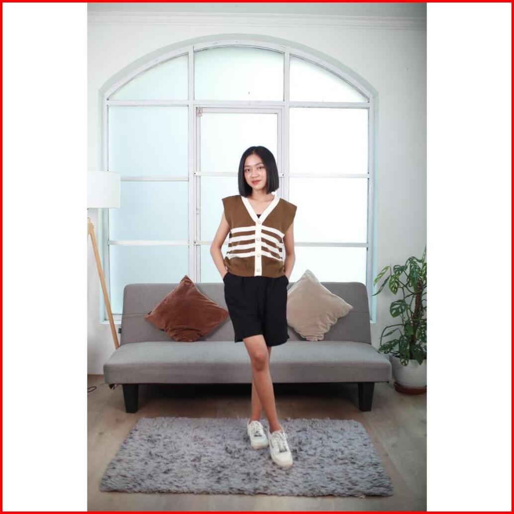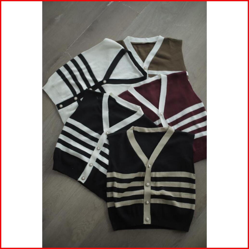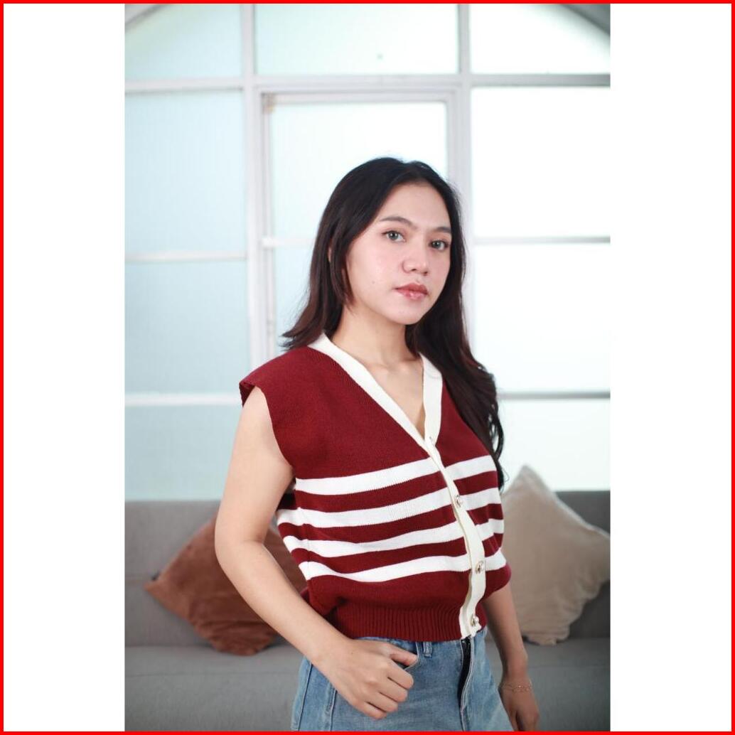 Suzy Vest Women Korean Top Atasan Wanita Rajut Stripes