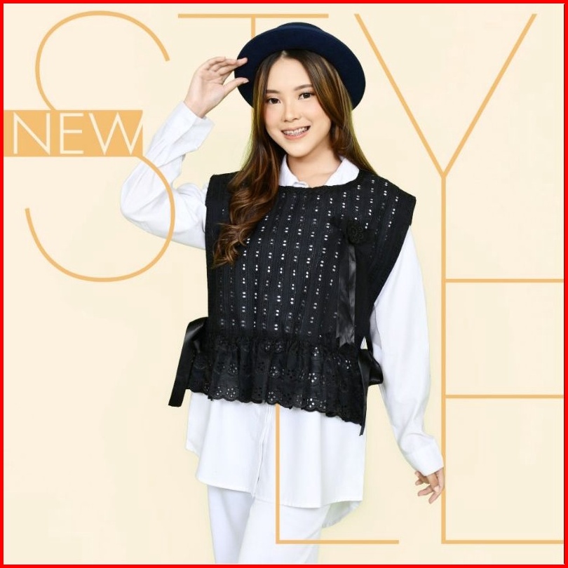 Rompi Vest Putih Unik Korea Style Katun Bordir