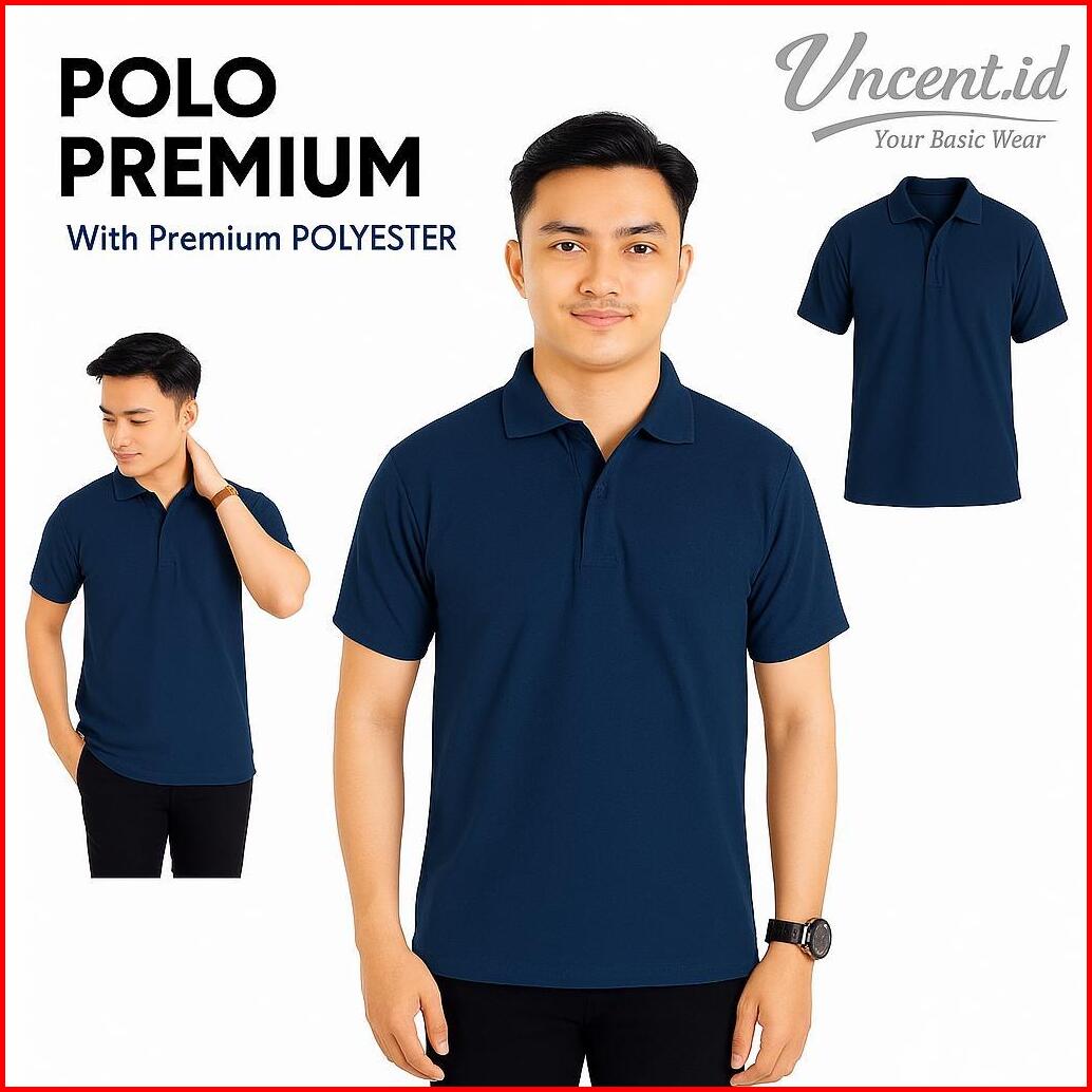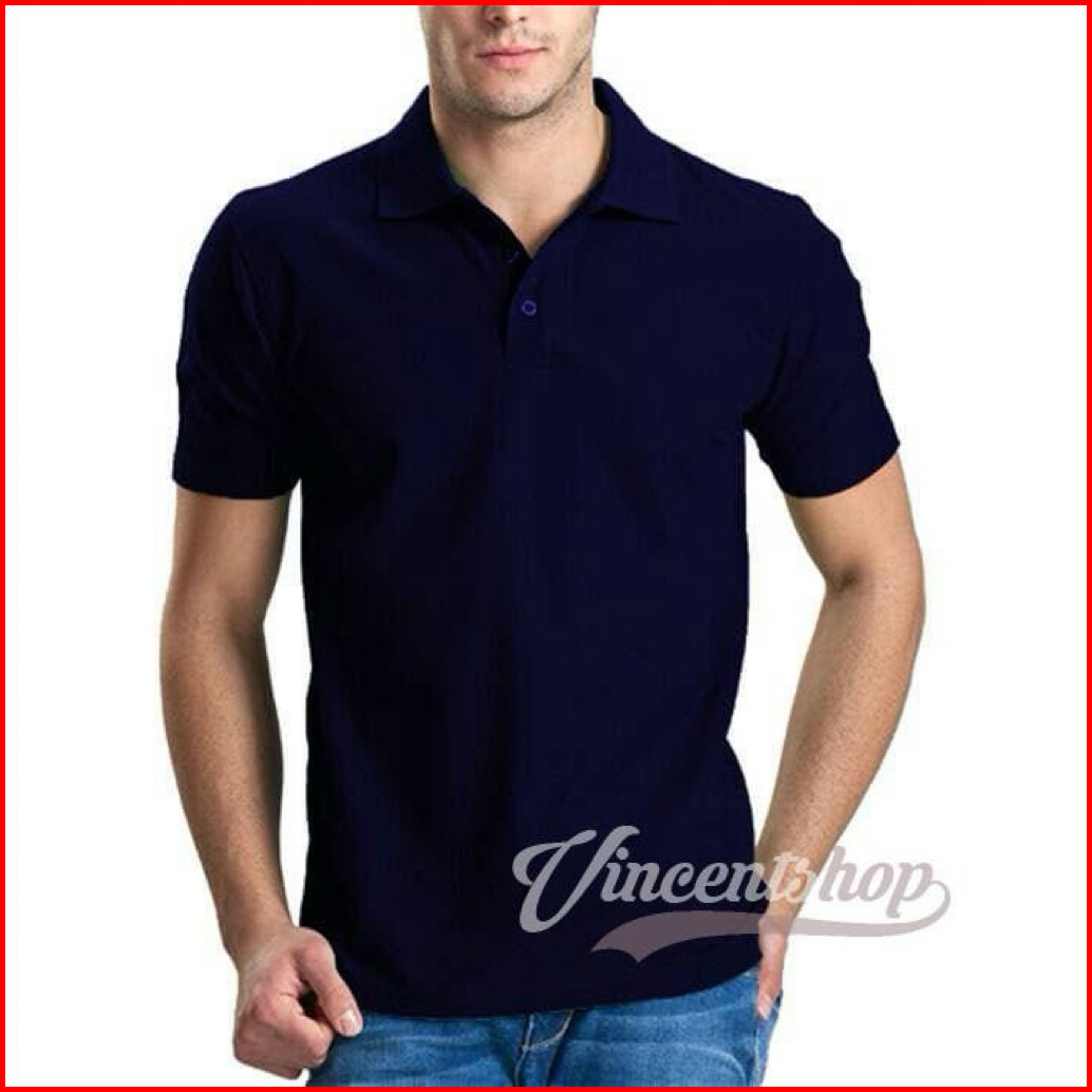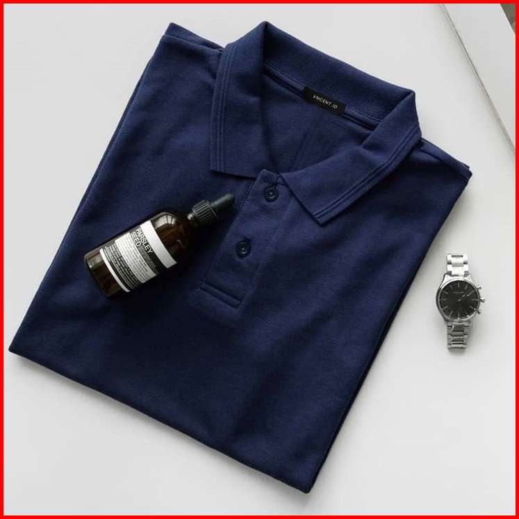 Vncentid Kaos Polo Pria Navy Biru Dongker Premium Tebal Kerah Katun Lengan Pendek Casual Elegan