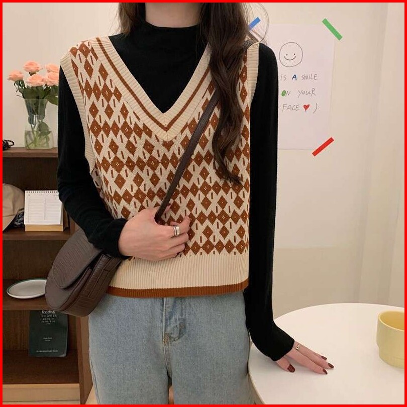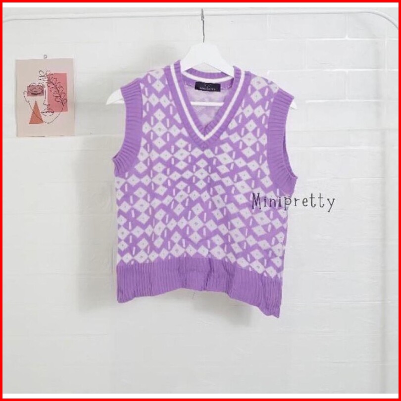 New Vest Knit Diamond Rajut Korea Rajut Murah Rajut Komputer