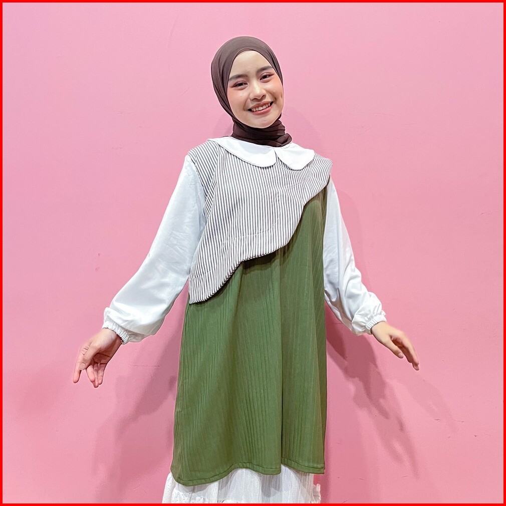 Mybamus Callope Tunik Knit Kombinasi Stripe Tunic Salur Kekinian Wanita Casual