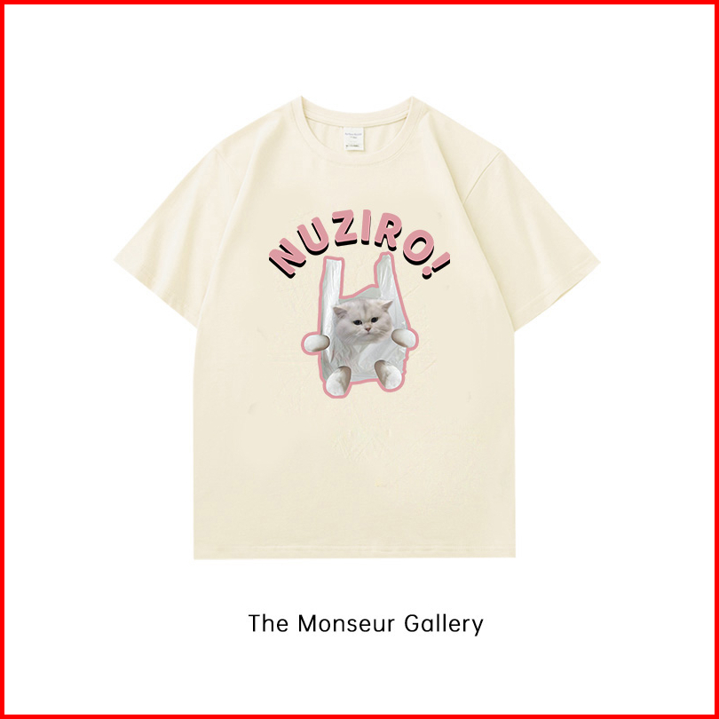 The Monseur Gallery T-shirt Oversize Cat In A Shopping Bag Kaos Wanita Cream