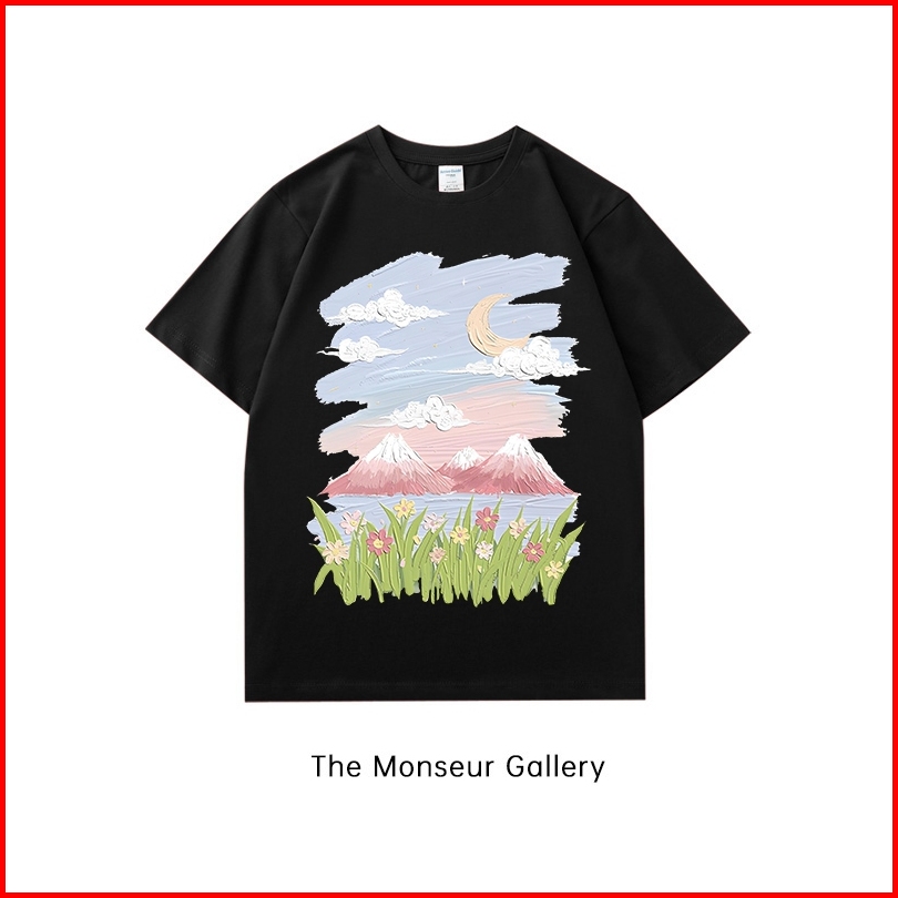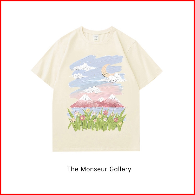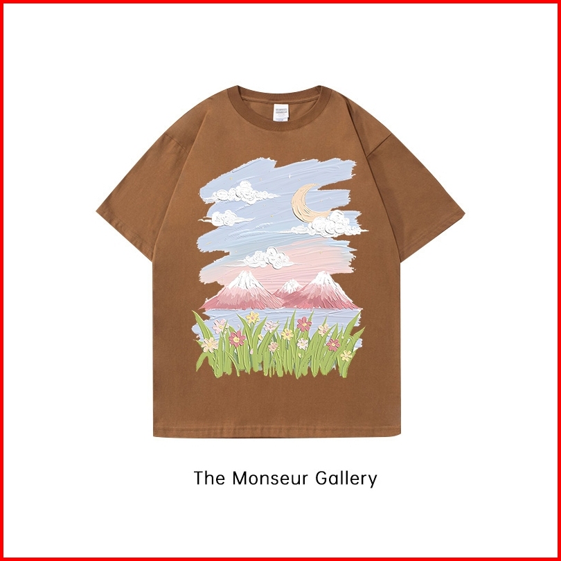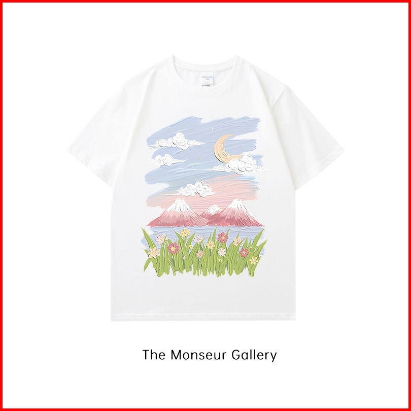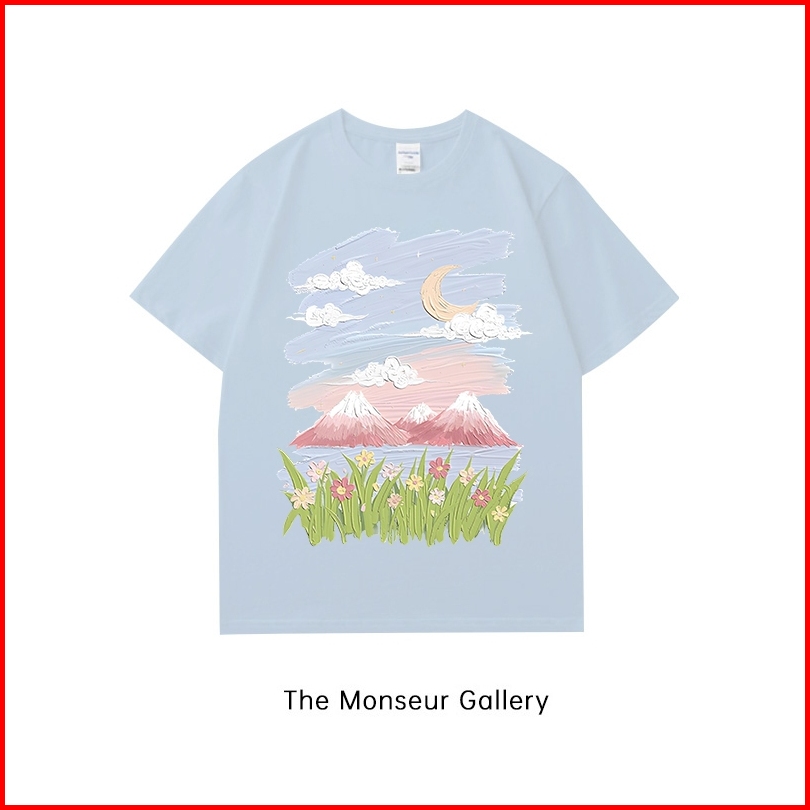 The Monseur Gallery T-shirt Oversize Oil Painting Flowers Kaos Wanita Biru