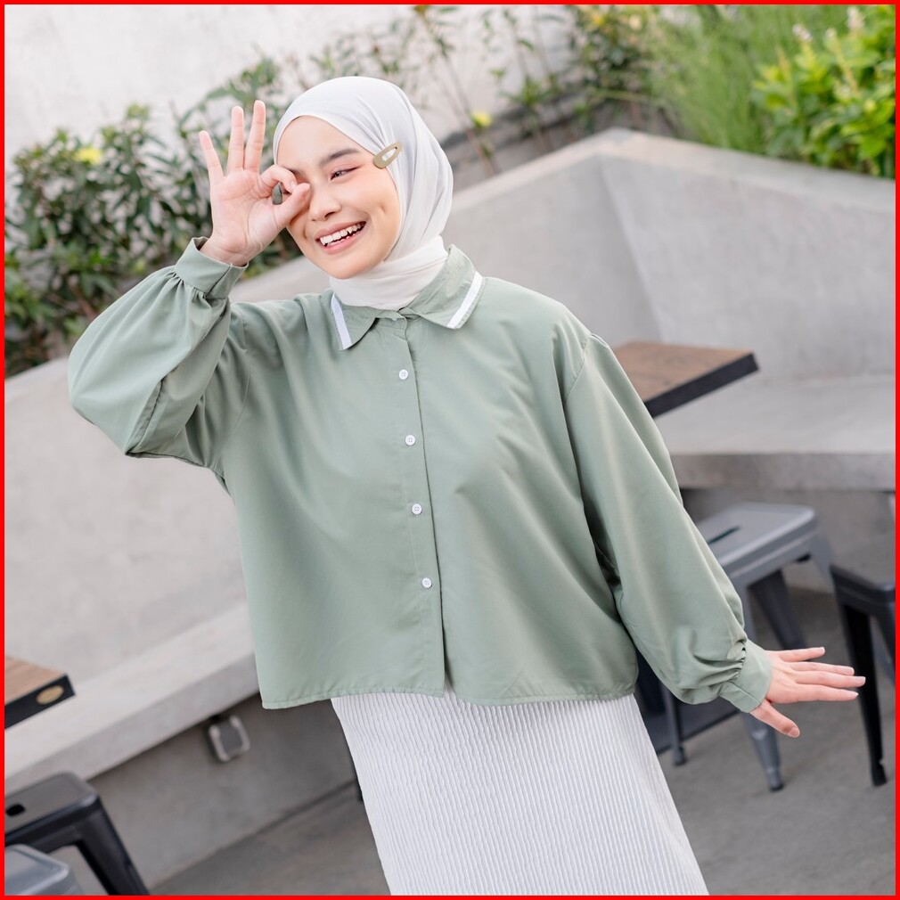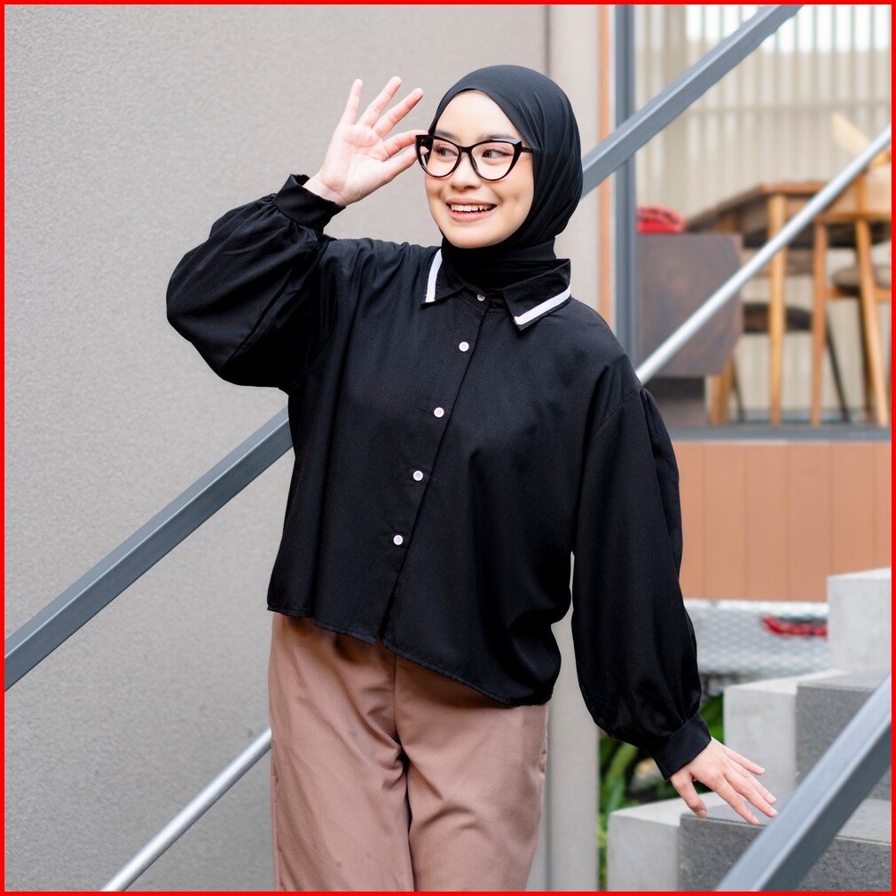 Mybamus Nala Kemeja Ballon List - Kemeja Wanita - Kemeja Balon Crop - Kemeja Kerja Wanita