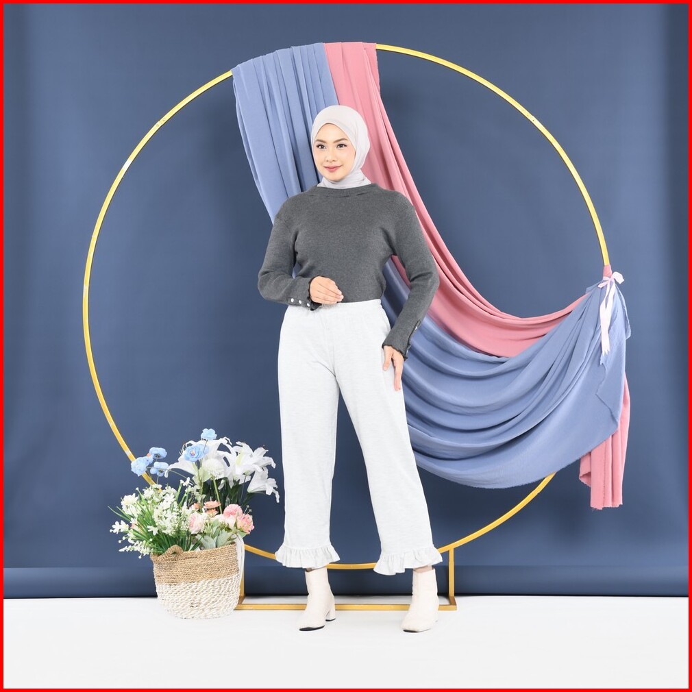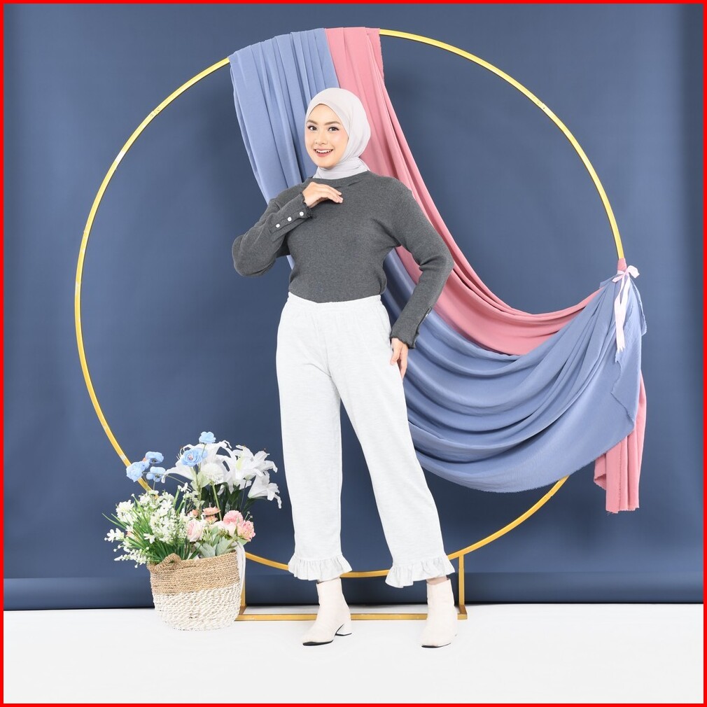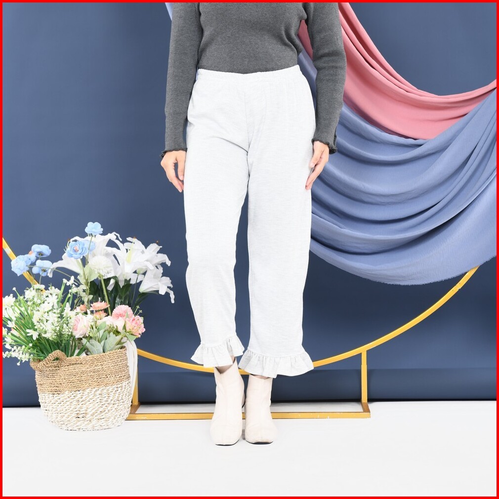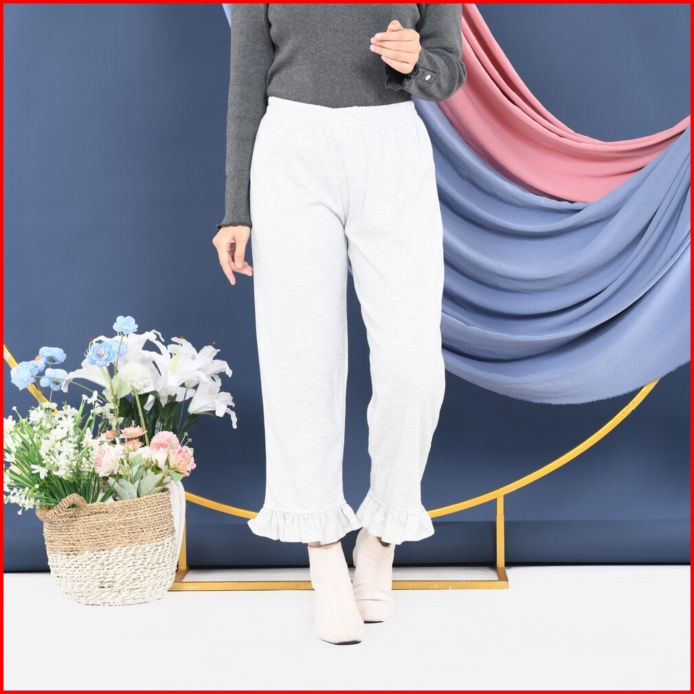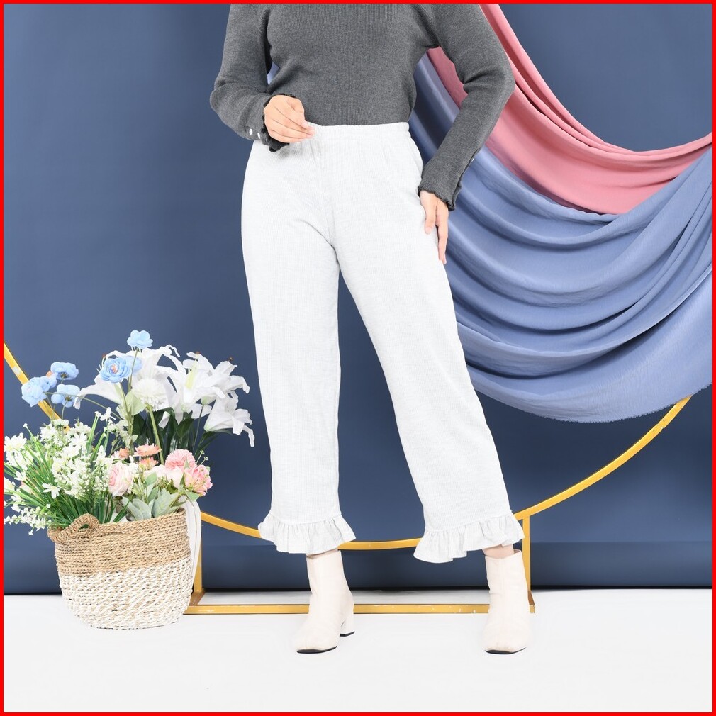 Mybamus Qila Highwaist Kulot Celana Panjang Cullote Knitted Korea Misty White M17312 R14s5