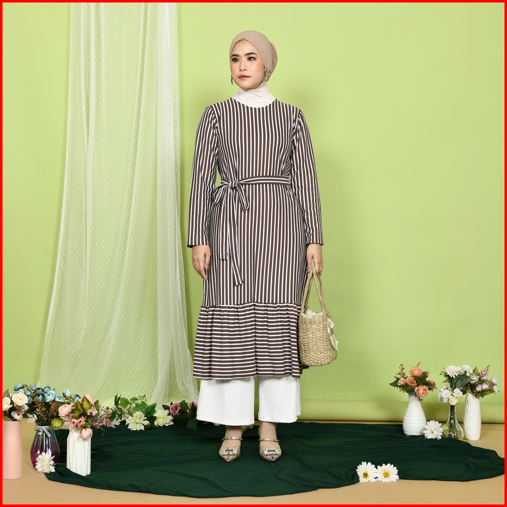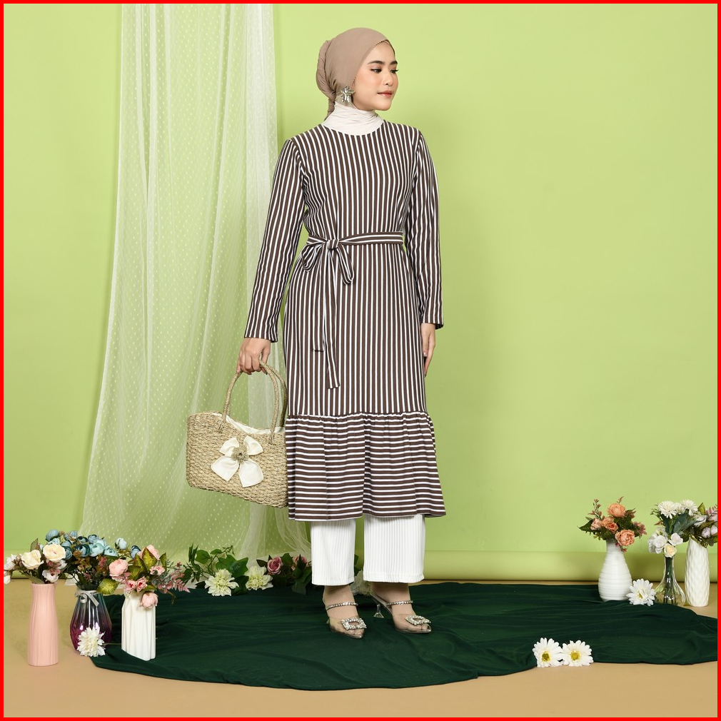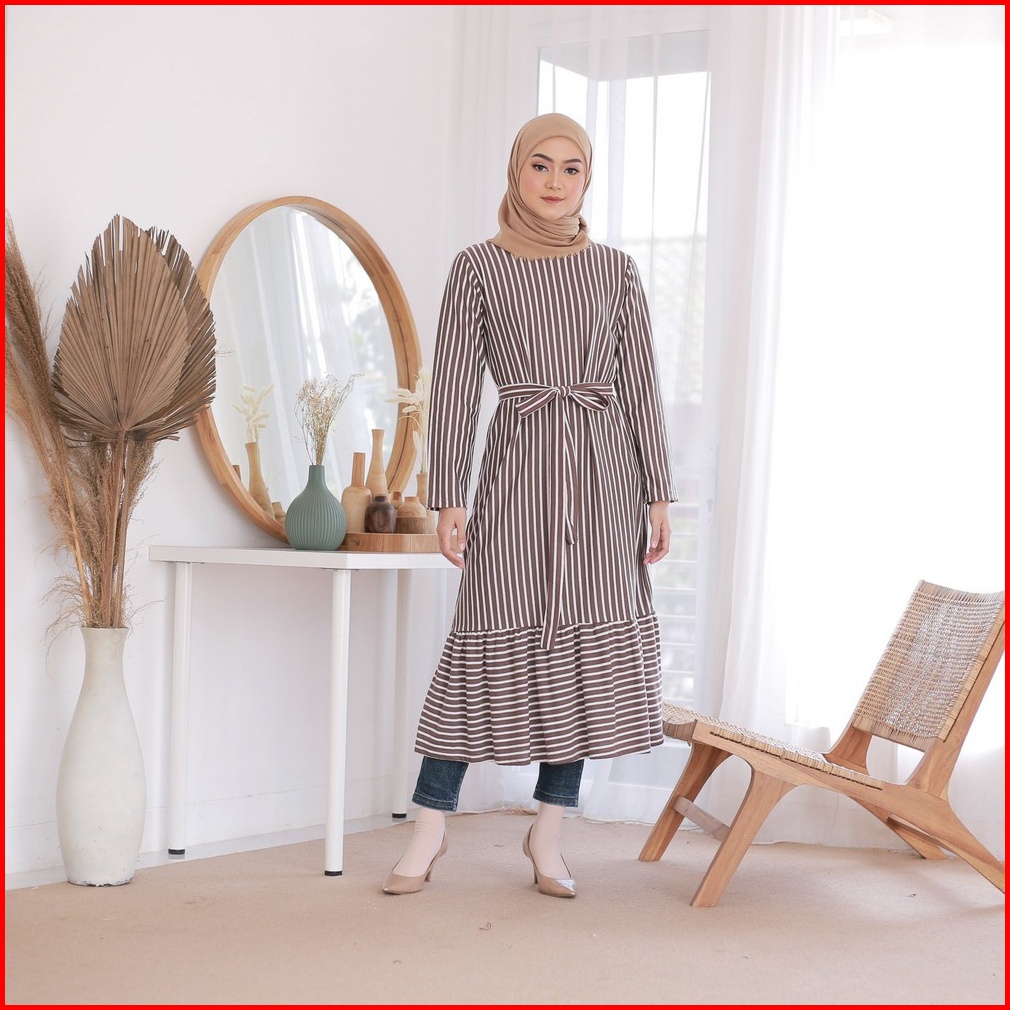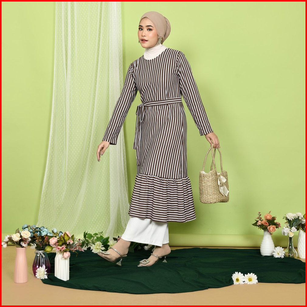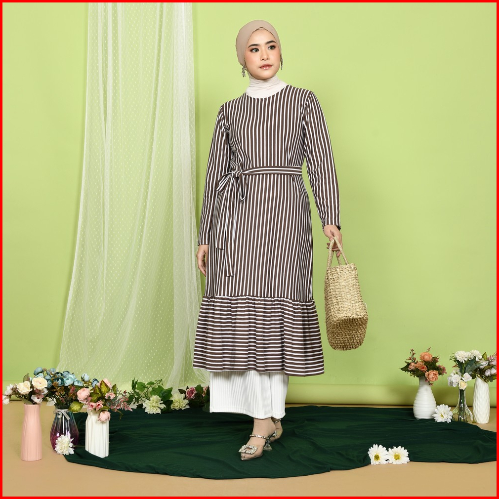Mybamus Benna Lace Tunic Mocca M14468 R93s1 - Midi Dress - Midi Gamis Lebaran