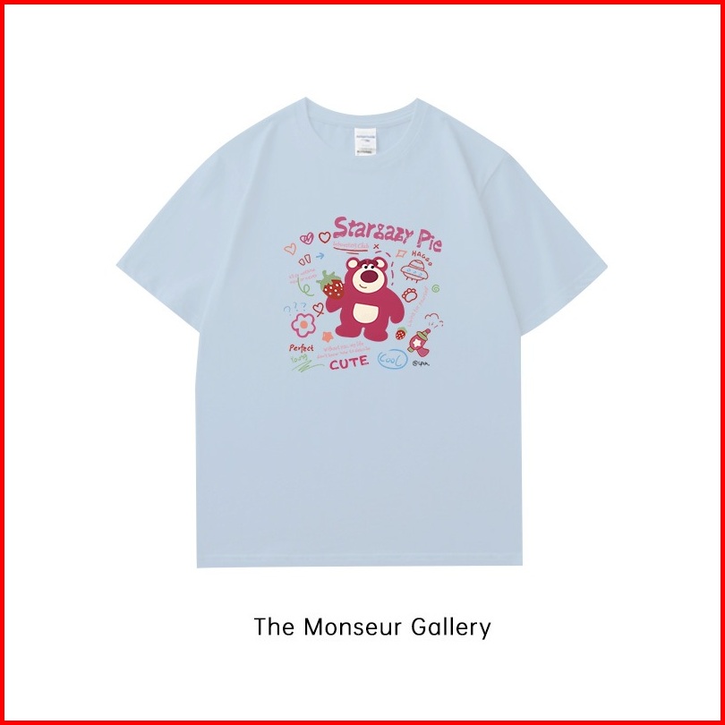 The Monseur Gallery T-shirt Oversize Strawberry Bear Kaos Wanita Biru