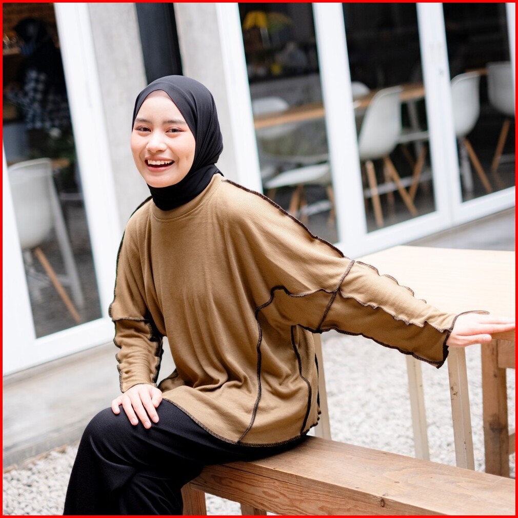 Mybamus Defika Oversize Tops Mocca M16157 R44s5 - Blouse Muslim Bobal Big Size